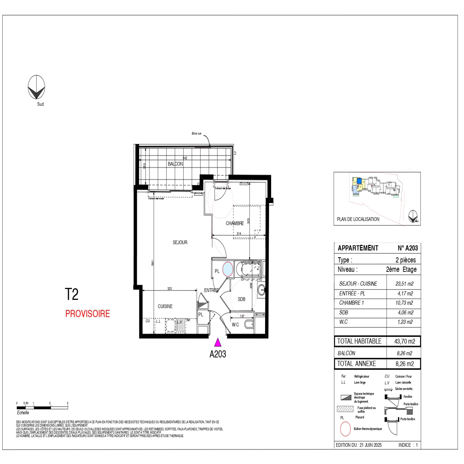 Dans une résidence neuve et sécurisée, découvrez ce bel appartement de type 2 d’une surface de 43,70 m² situé au 2ème étage sur 3. Il se compose d’un séjour lumineux équipé de la climatisation, d’une chambre confortable de 10,73 m², d’une salle d’eau moderne et d’un espace extérieur exceptionnel. Vous profiterez en effet d’une terrasse de près de 9m².