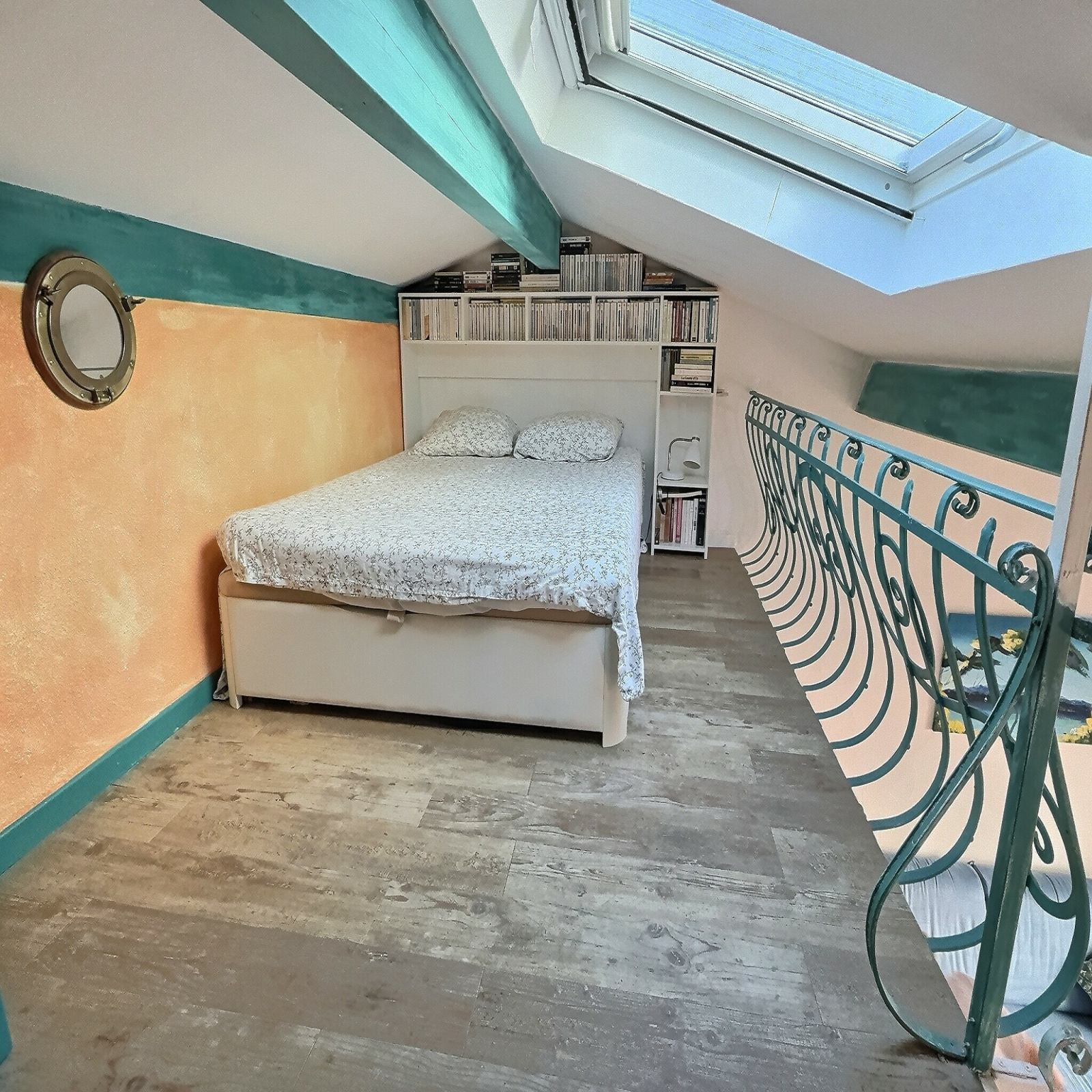 À l'étage, une grande mezzanine a été intelligemment aménagée pour offrir des couchages supplémentaires, un espace parfait pour accueillir famille et amis en toute sérénité.