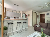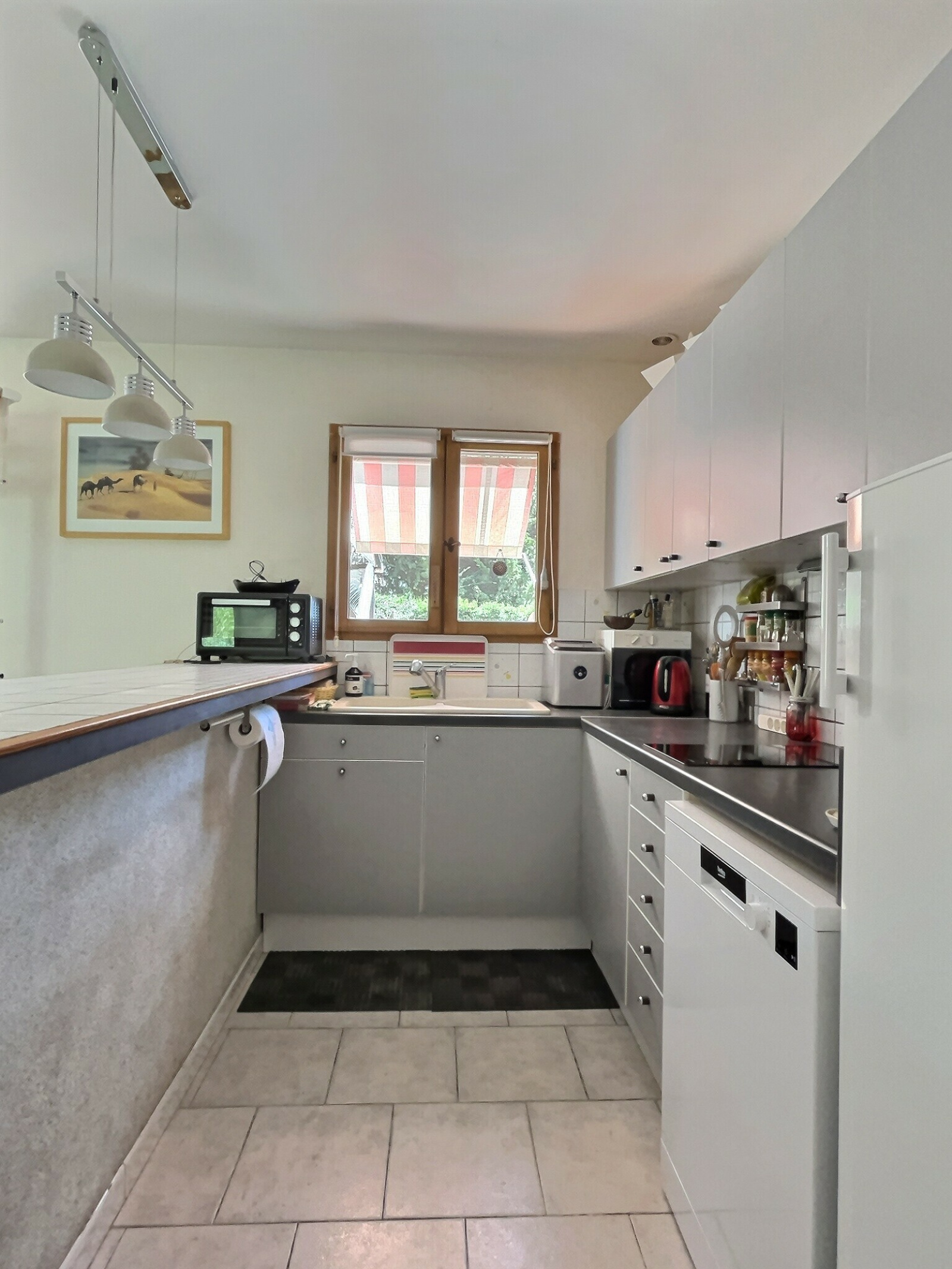 Elle se compose de deux chambres lumineuses, une cuisine semi ouverte sur la pièce de vie conviviale avec son séjour qui donne sur une terrasse et un jardin joliment arboré