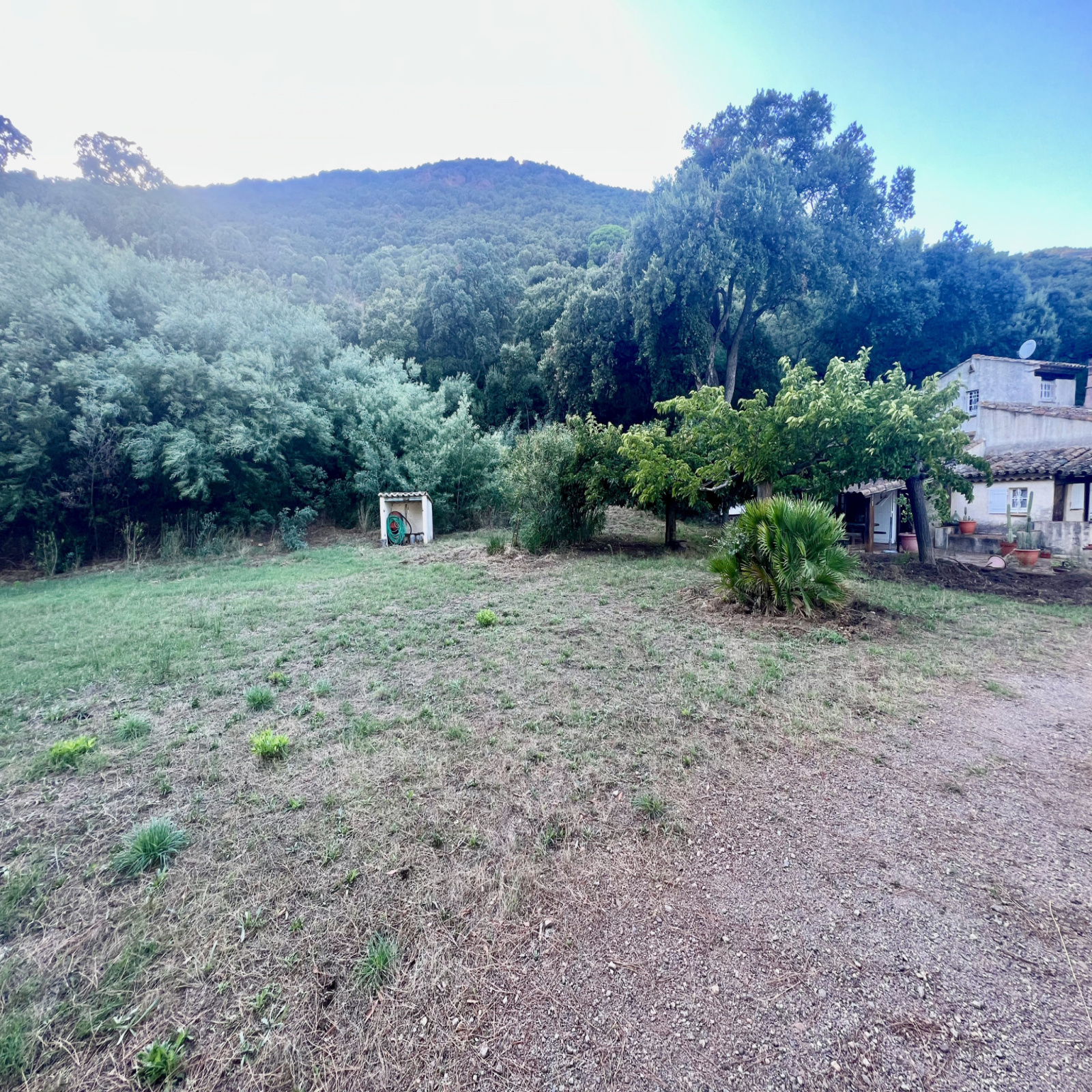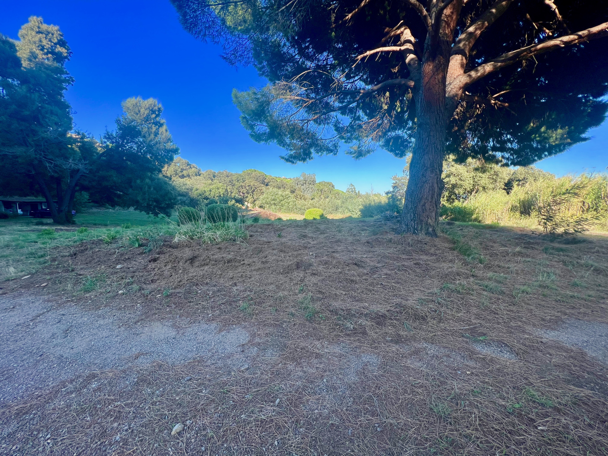 Implanté en zone naturelle, le terrain – unique sur le secteur – est vaste, quasiment entièrement plat et offre plusieurs aperçus mer.