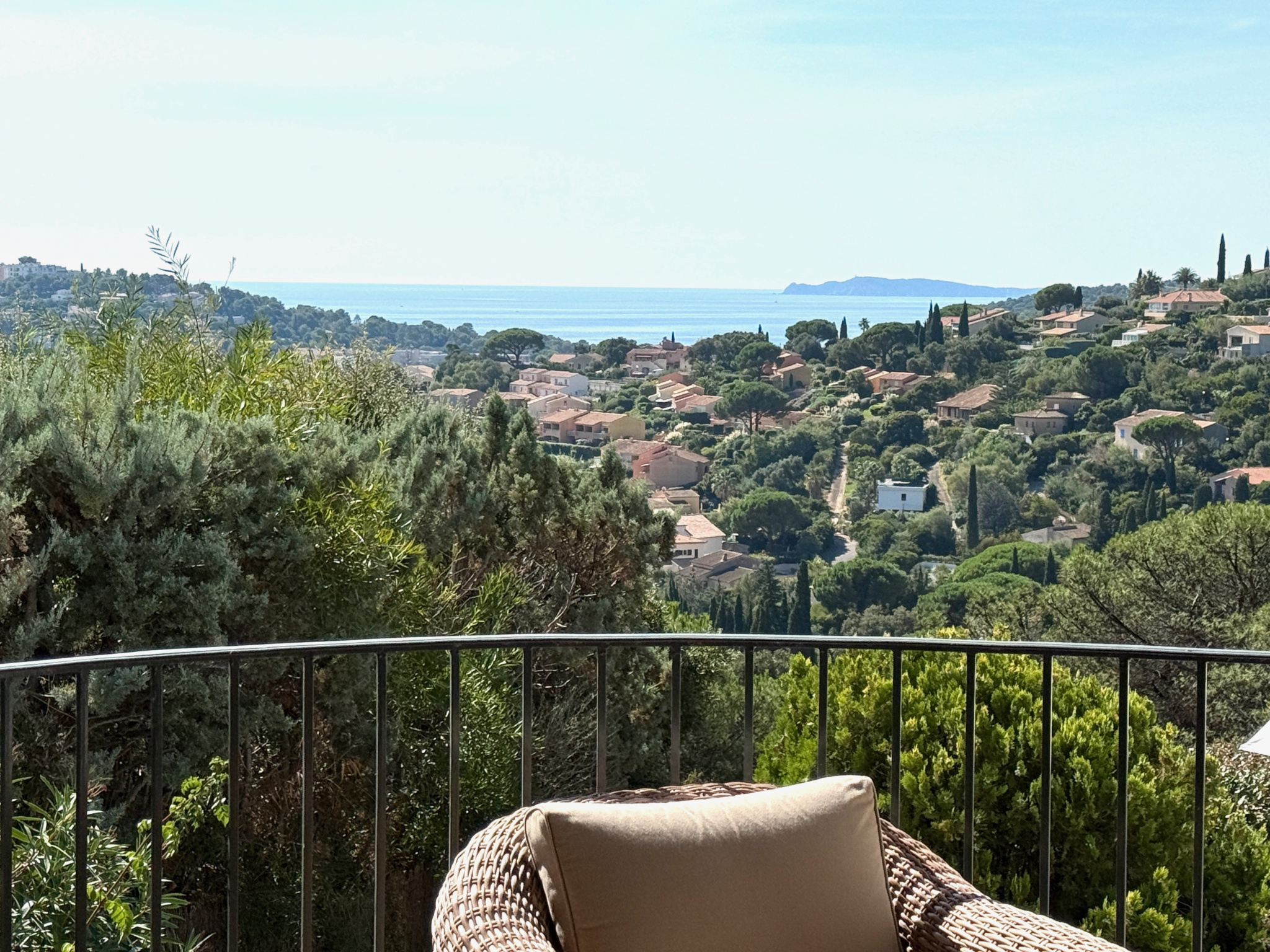 Dans un quartier recherché, exposée plein Sud, cette villa entièrement rénovée offre une vue panoramique sur la mer et les Îles d’Or.