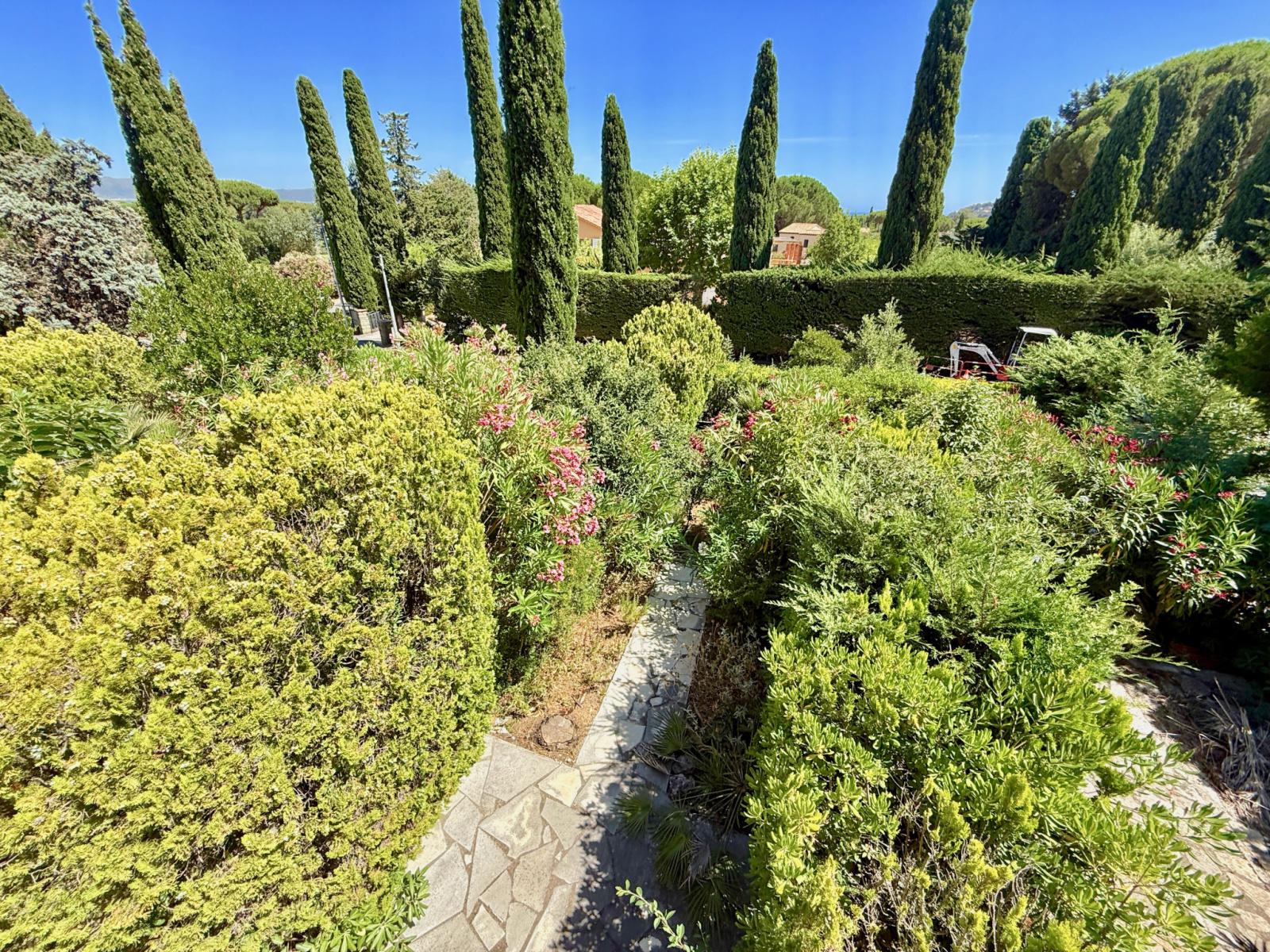 À l’étage, une chambre, salle de bain, WC séparé et terrasse avec aperçu mer, puis une seconde chambre au dernier niveau.