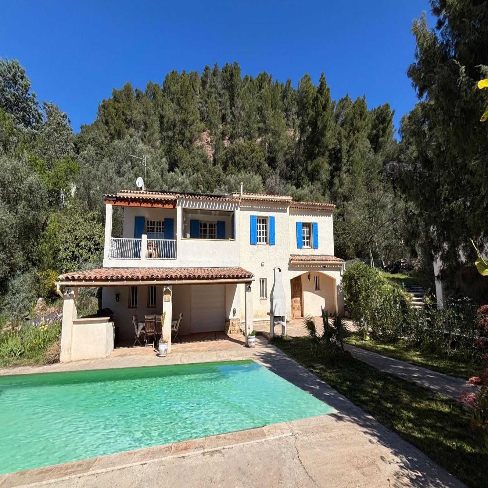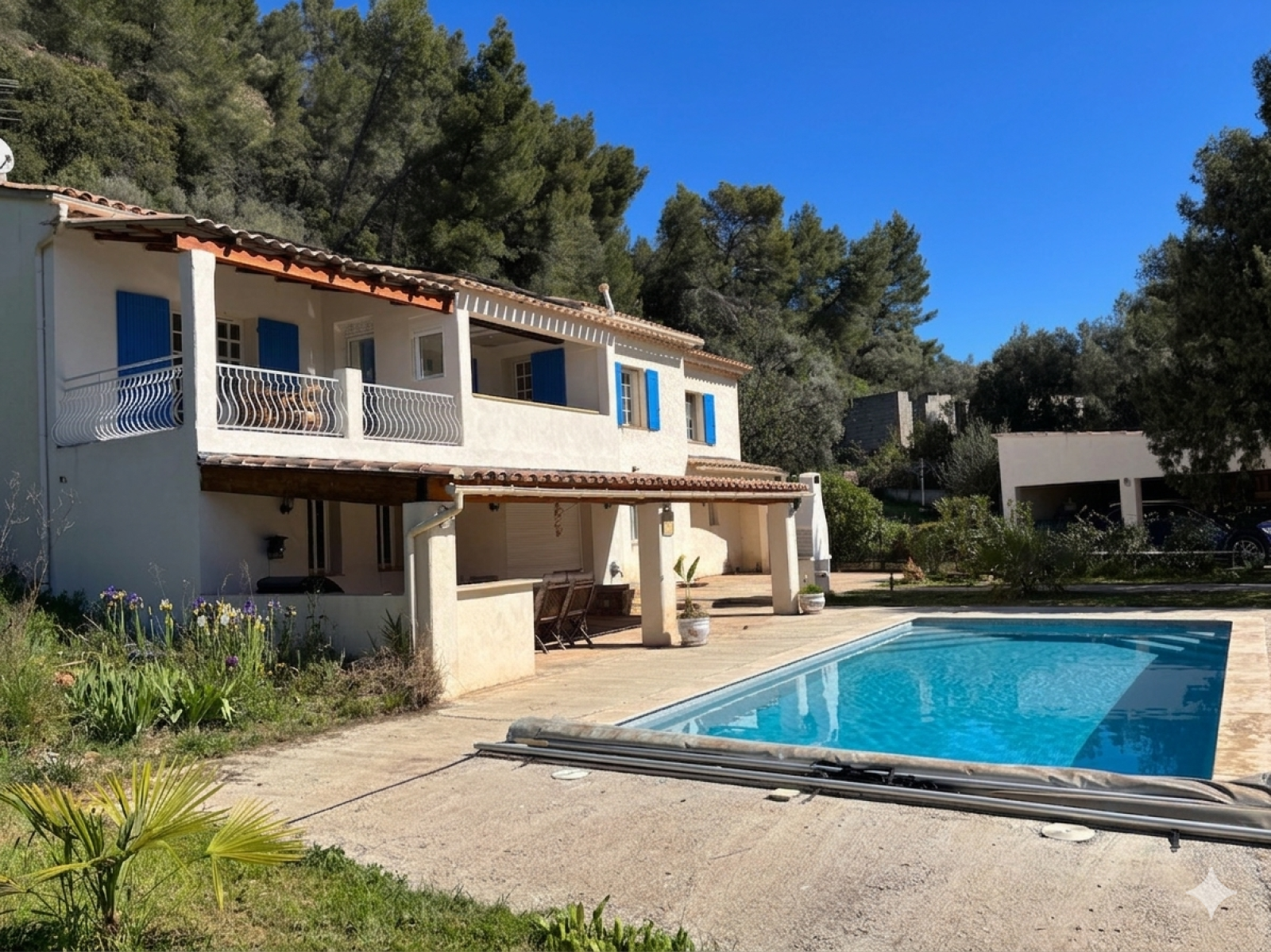 Sur une belle parcelle en restanques de 4 392 m², au cœur d’une zone naturelle préservée et d’un paysage verdoyant, s’élève cette grande maison familiale, avec une superbe vue dégagée, aux volumes généreux, et au potentiel très intéressant (235 m2 de surface au sol). Le rez-de-chaussée s’ouvre sur un large vestibule avec buanderie isolée, puis se prolonge par trois pièces en enfilade + 1 salle de douche avec WC, dont pièce 1 centrale avec baies vitrées coulissantes, donnant sur la terrasse abritée et sa cuisine d'été, et la piscine. On y trouve également une salle d’eau avec WC, 2 caves, offrant ainsi la possibilité d’aménager un appartement totalement indépendant. L’étage, accessible par un escalier intérieur, accueille un second vestibule avec rangements, une grande cuisine séparée ouvrant sur une terrasse couverte, ainsi qu’un double séjour doté d’un insert, et prolongé lui aussi, par un espace extérieur couvert. Un couloir agrémenté de nombreux rangements dessert trois belles chambres, une salle d’eau avec WC, une salle de bains, et un dressing. Les combles, construits sur dalle béton, ajoutent une intéressante réserve d’aménagement. L'ensemble de l'espace peut se prêter à différents réaménagements/redistributions, en fonction des projets recherchés. La maison bénéficie de nombreux équipements : double vitrage d’origine, VMC hydroréglable, climatisation gainable, panneaux solaires permettant une autoconsommation avec revente annuelle, chauffe-eau récent, possibilité d’autonomie électrique via batterie, adoucisseur d’eau, toiture isolée, vide sanitaire isolé, et fosse septique conforme. À l’extérieur, la propriété déploie un cadre de vie particulièrement appréciable, marqué par une piscine au sel entourée de sa plage dallée, de vastes terrasses dont certaines abritées, une cuisine d'été, un local technique, un boulodrome à la lyonnaise, un bassin et des cuves de récupération d'eau, sans oublier les murs de restanques qui dessinent le terrain. Un double abri voiture avec rangements, ainsi qu’un portail électrique télécommandé, complètent l’ensemble. L’intérieur nécessite une rénovation, mais l’environnement, le potentiel et le charme du site en font une belle opportunité, idéale pour une grande famille, un projet de maison de vacances, de locatif, ou un aménagement en plusieurs logements. Contactez-nous pour organiser une visite! Située au cœur de la Provence verte, Vidauban séduit par son cadre naturel préservé, entre vignes, collines et rives de l’Argens. Le village offre toutes les commodités essentielles — commerces, écoles, services médicaux, axes routiers et gare à proximité — tout en conservant son authenticité provençale. Une adresse recherchée, à seulement une trentaine de minutes des plages du Golfe de Saint-Tropez, et à 5 minutes de l'entrée de l'autoroute, parfaite pour allier confort de vie et douceur méditerranéenne. Arrêt de bus en début de chemin pour les écoliers.