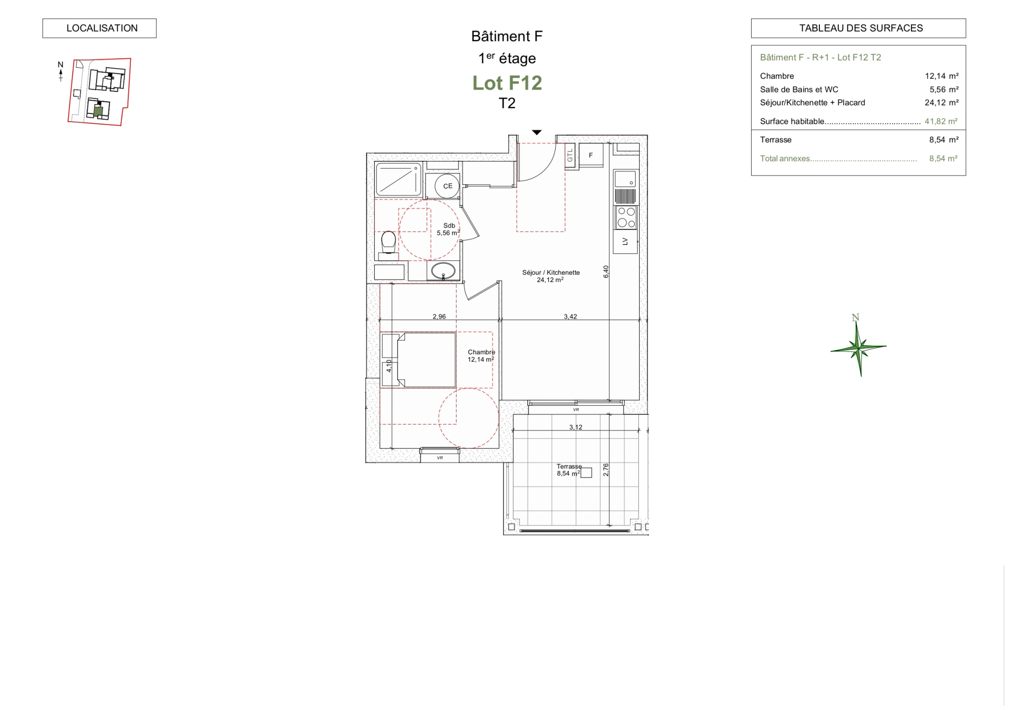 Le séjour avec cuisine ouverte s’ouvre sur une terrasse exposée plein sud de 8,54 m², idéale pour profiter du climat méditerranéen et prolonger agréablement l’espace de vie.