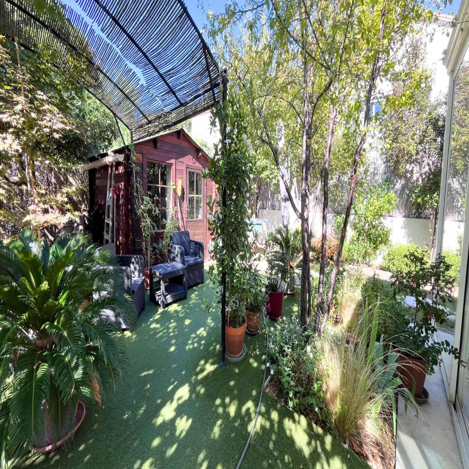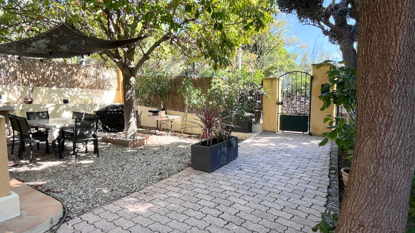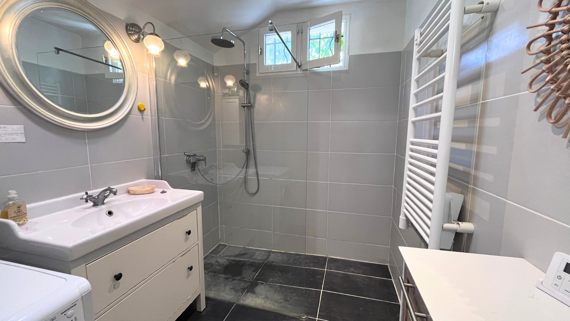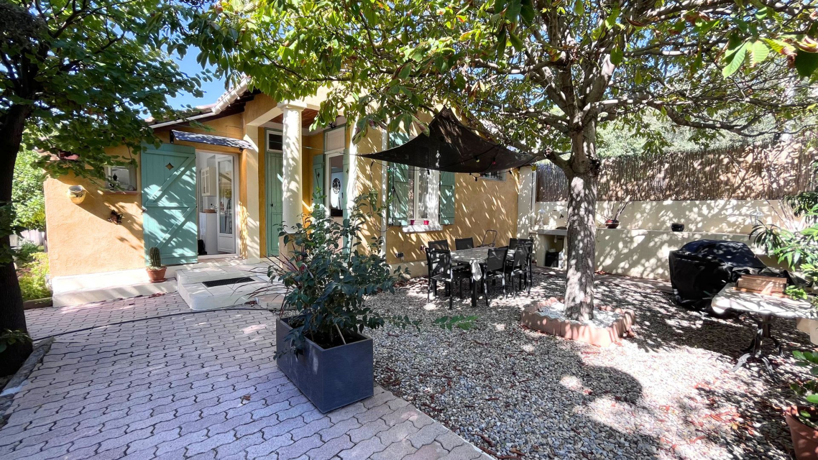 Deux grandes terrasses ombragées, cabane de jardin, climatisations réversibles, PVC et ALU double vitrage.