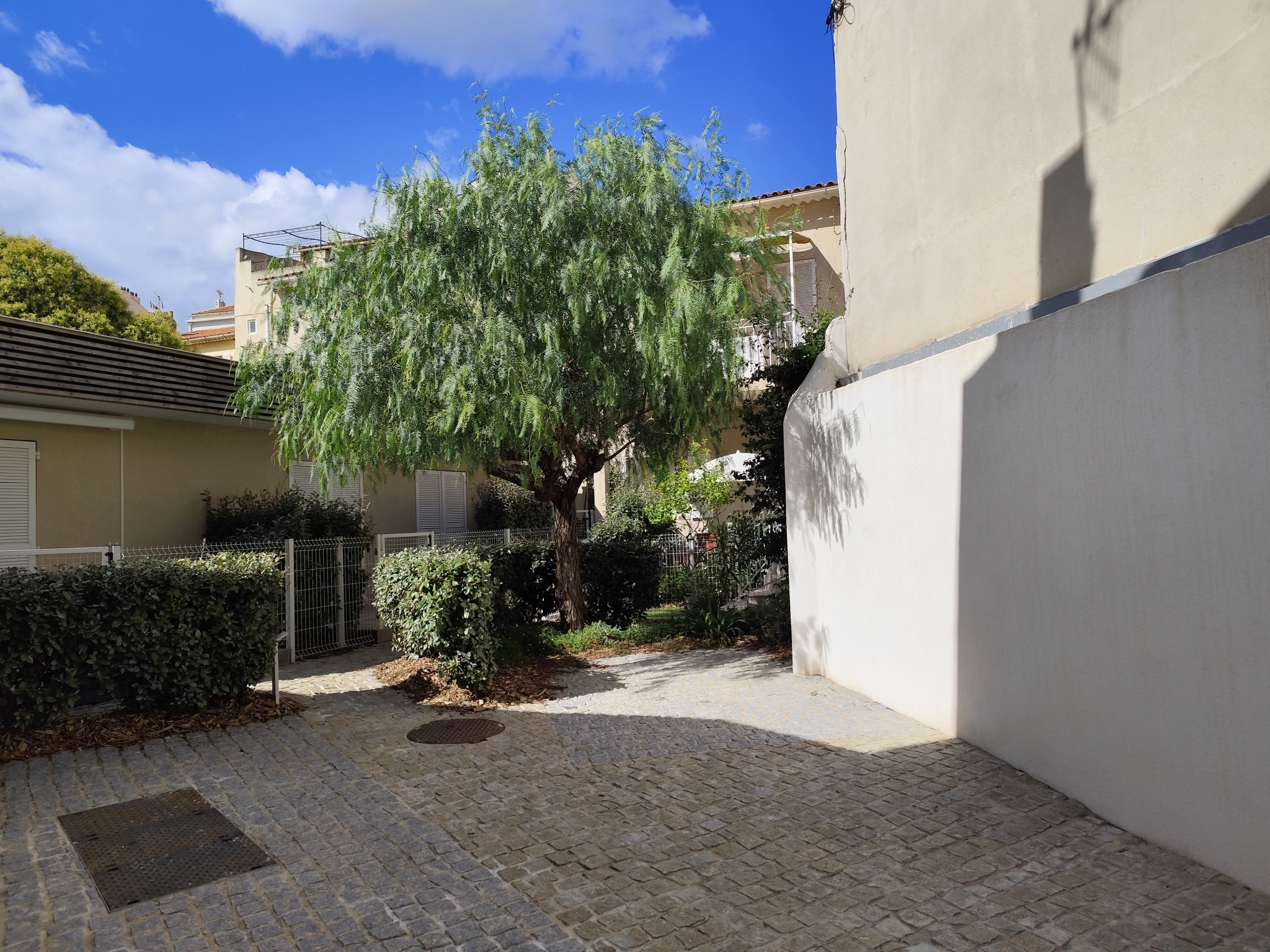 L’entrée se fait par une petite cour végétalisée, rare en plein centre de Bandol, parfaite pour respirer, se poser, retrouver un peu de fraîcheur.