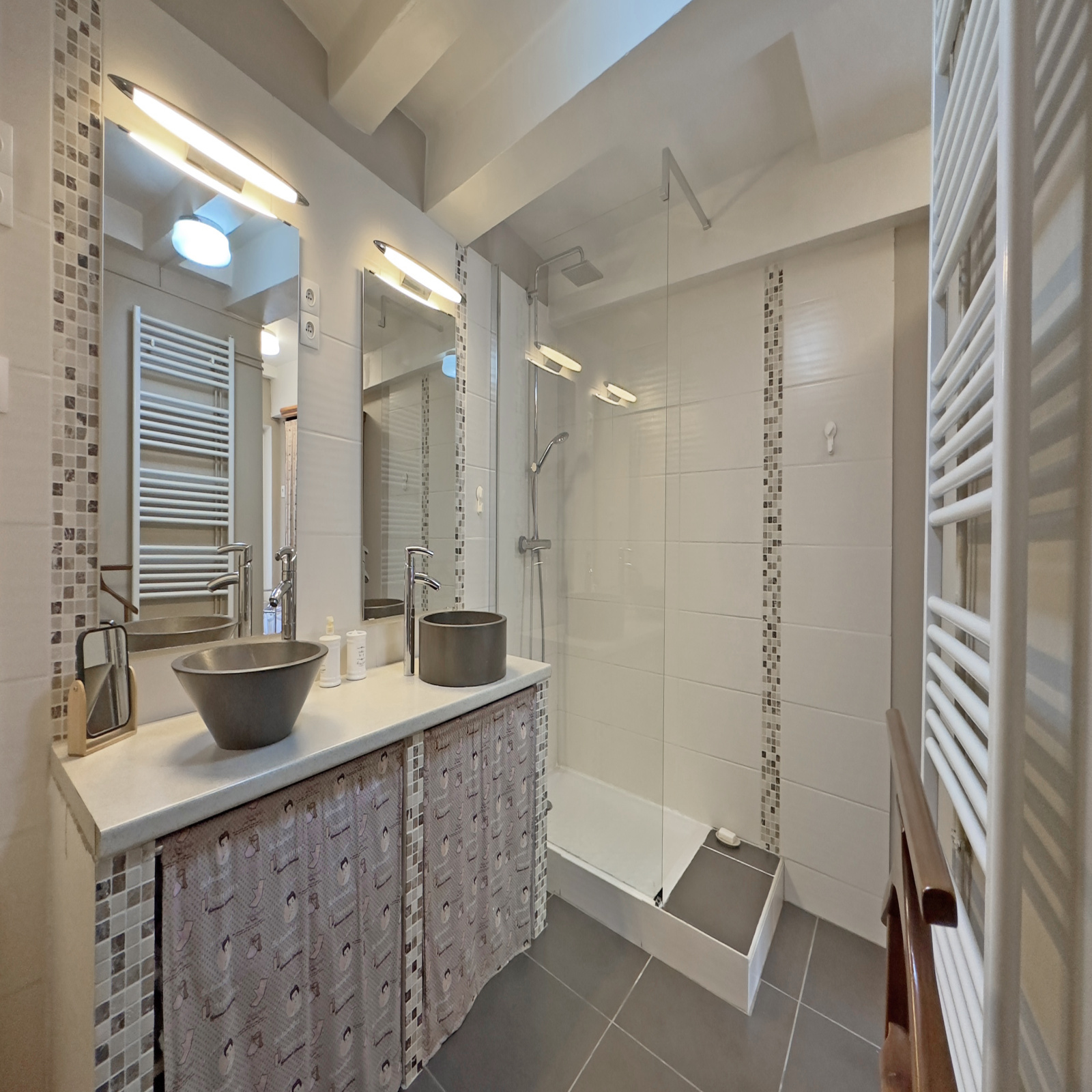 La maison bénéficie également d’une terrasse, d’un garage avec mezzanine et d’une place de parking privative, un vrai atout en centre-village.
