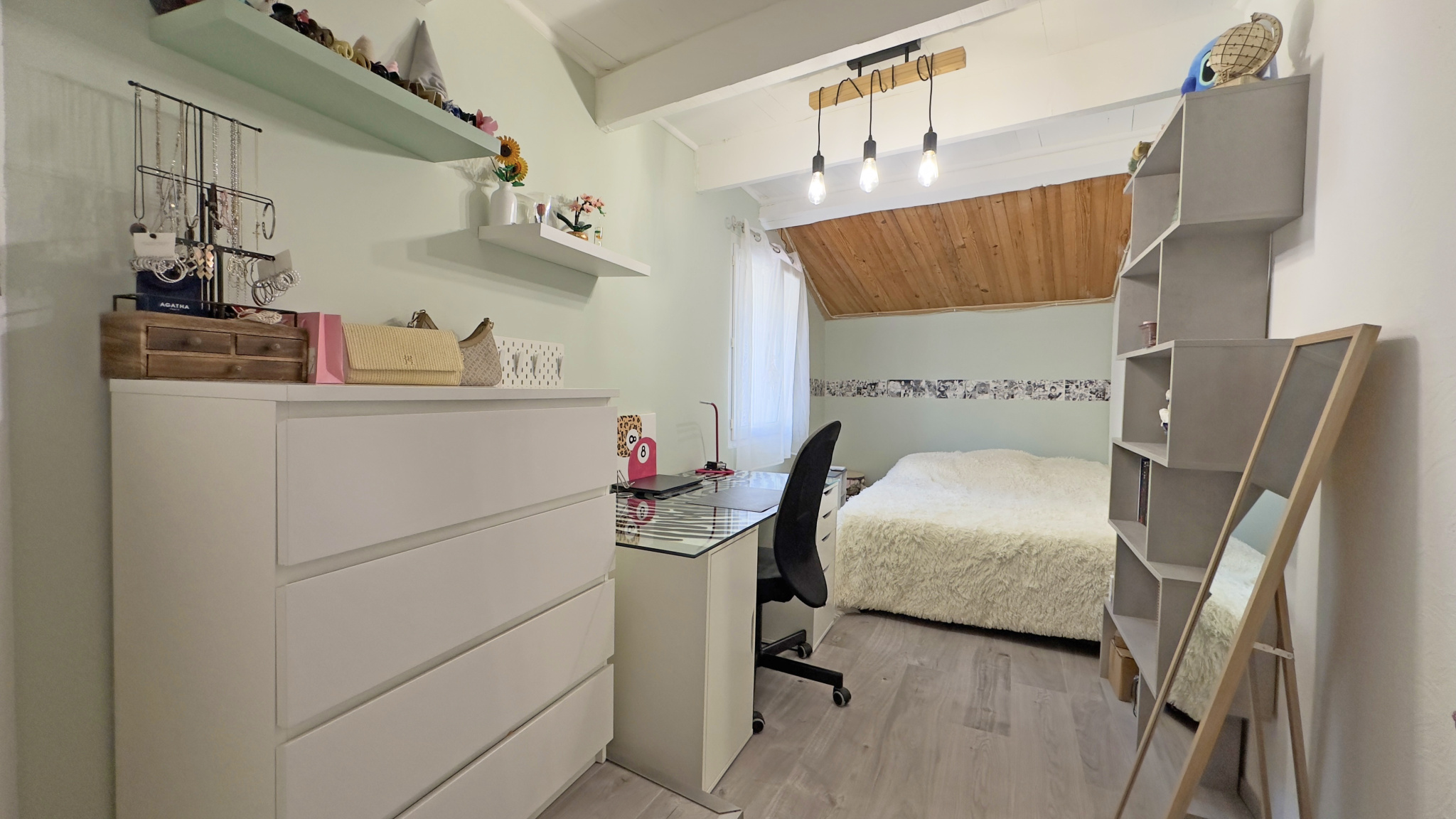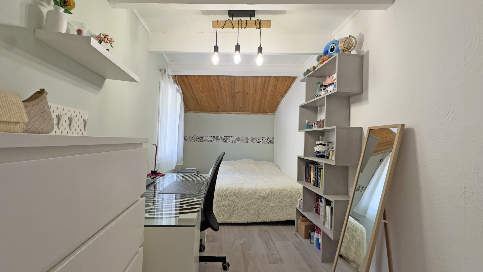 Au premier étage, une chambre spacieuse, une salle d’eau et un WC indépendant apportent confort et praticité au quotidien.