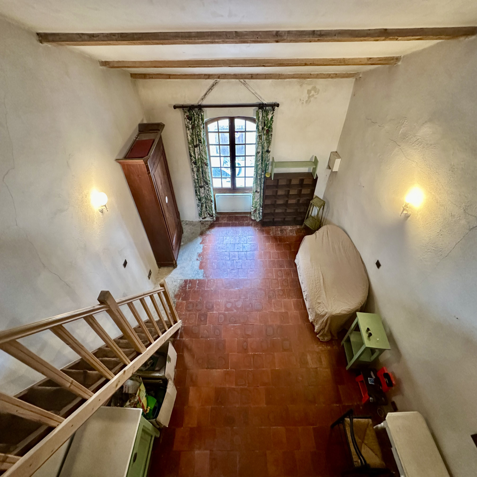 Vous pourrez ensuite découvrir, à l'étage, une spacieuse pièce de 36 m2 laissant libre cours à vos projets et besoins, une salle de bains-WC, et une mezzanine avec vélux + WC.