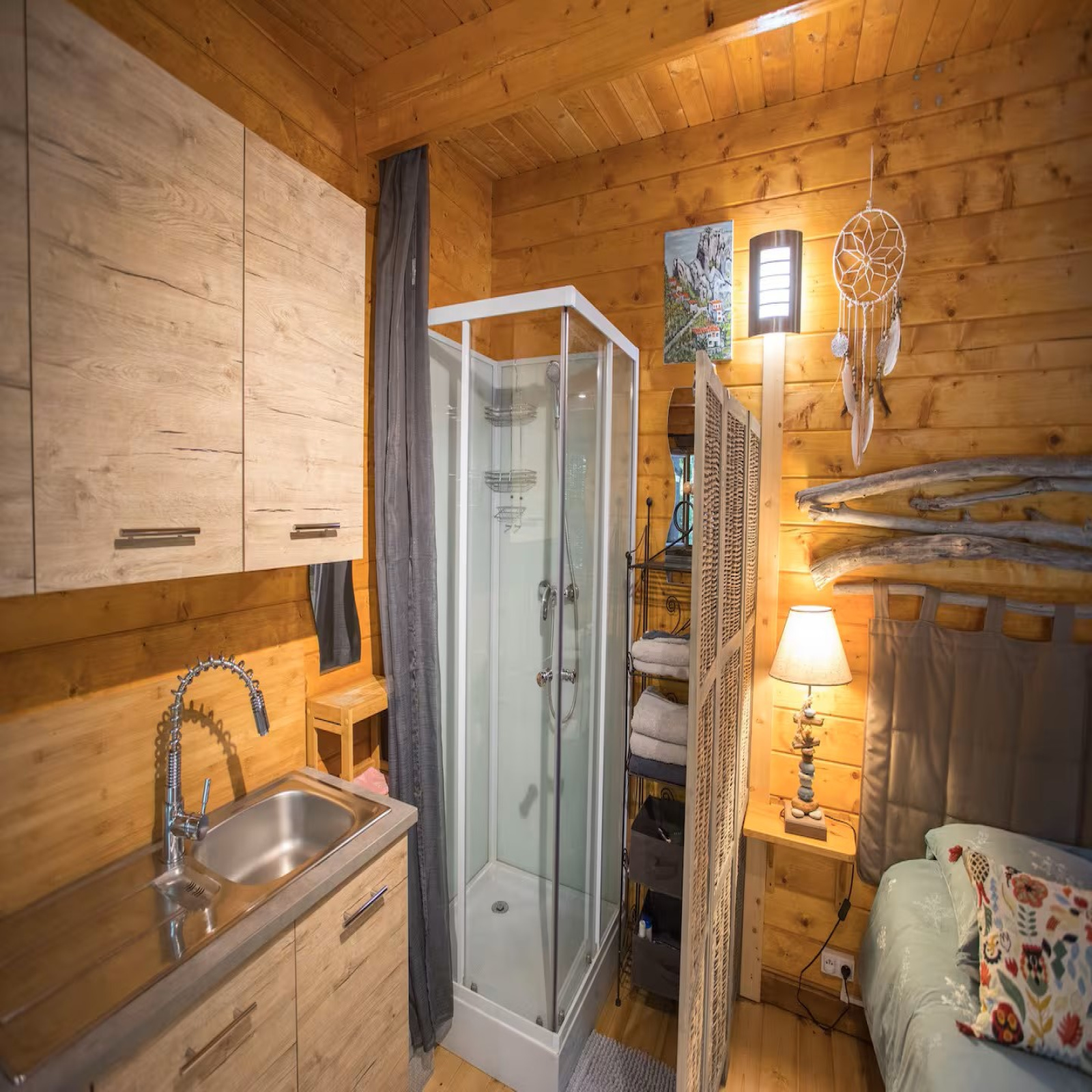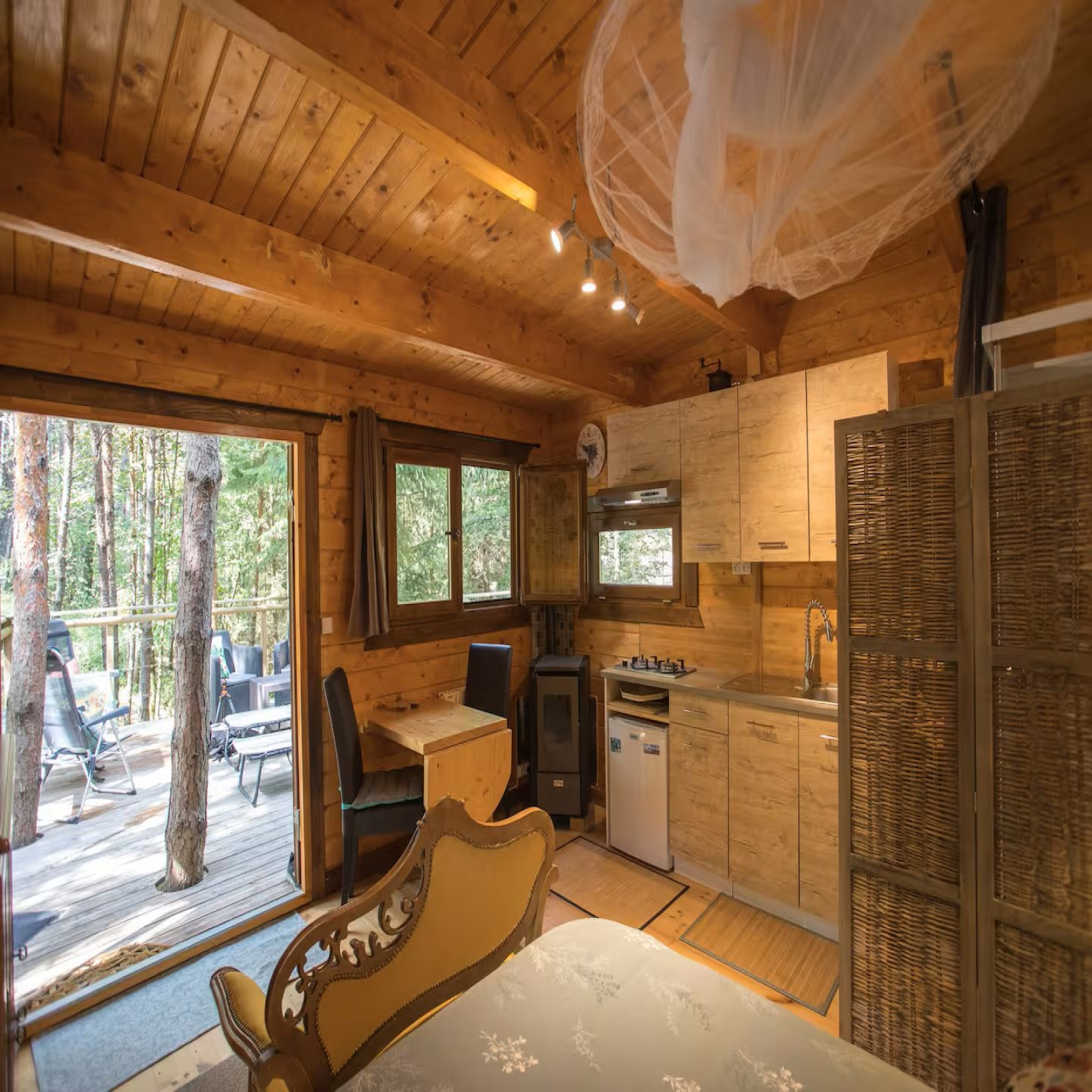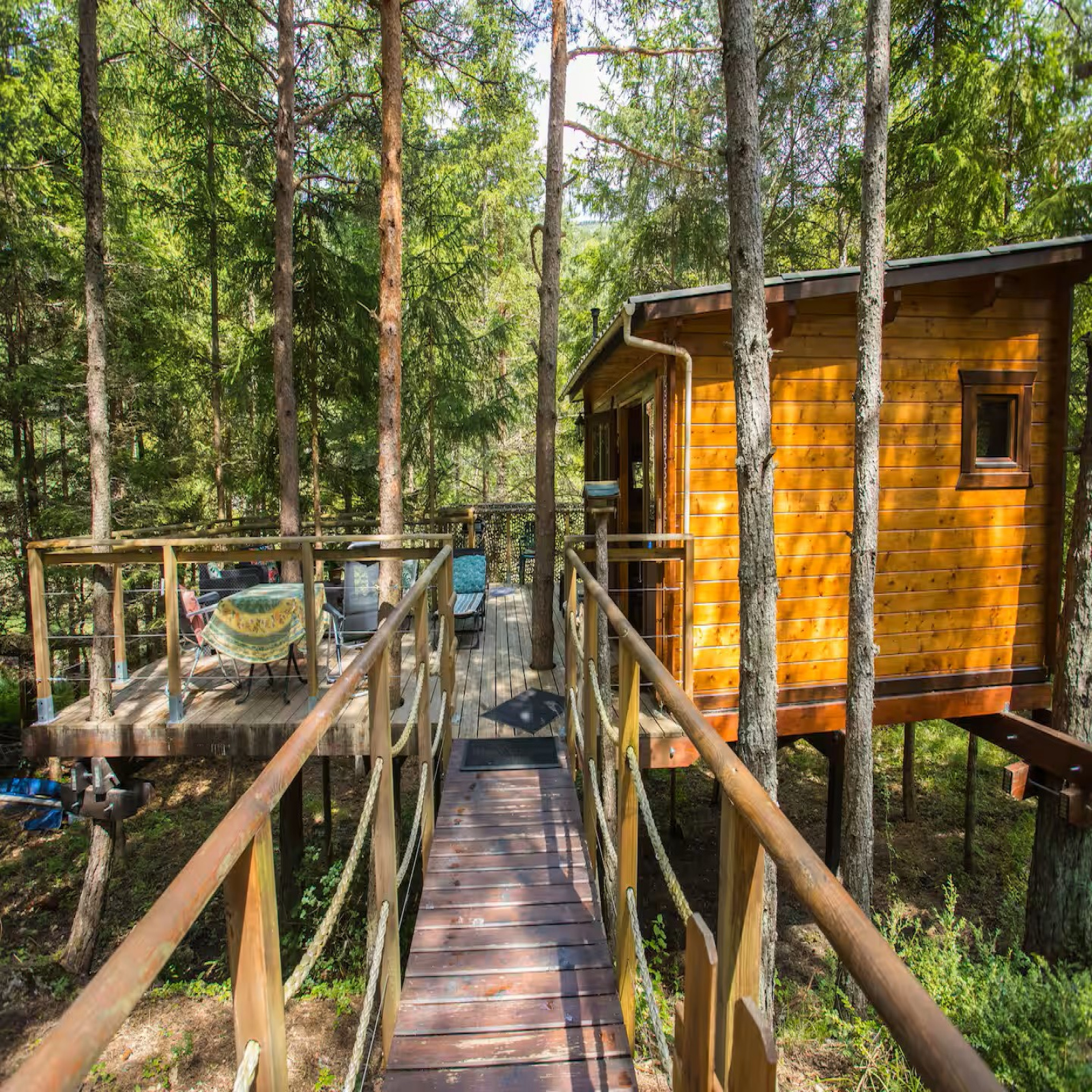 Au milieu d'un terrain agricole de 13 hectares avec forage d'eau, se trouvent encore 2 gîtes, une cabane dans les arbres et un chalet entièrement aménagé. Il est envisageable d'inclure encore 4 gîtes afin d'accroître la rentabilité de la location saisonnière.