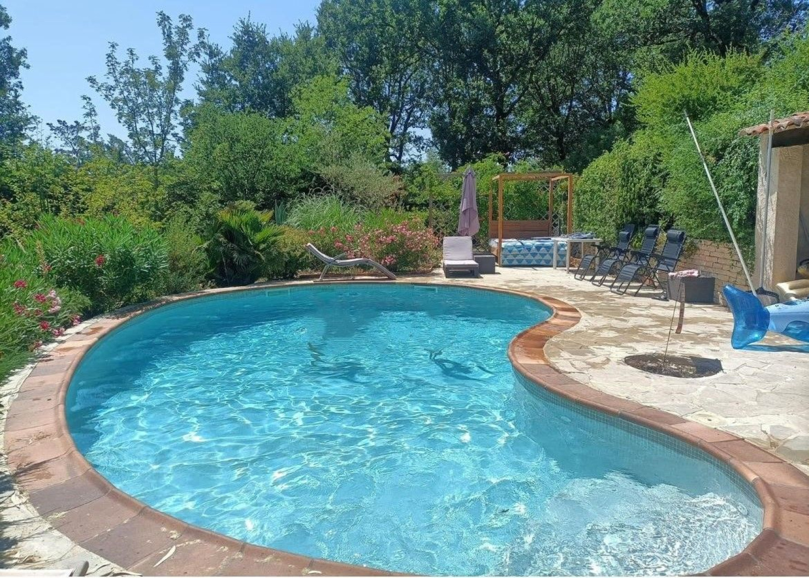 Un jardin avec jolie piscine et poolhouse vient l'agrémenter, un gain d'espace et de confort appréciable. Un garage, un atelier et une cave à vin. Trois places de parking sont prévus pour stationner votre véhicule.