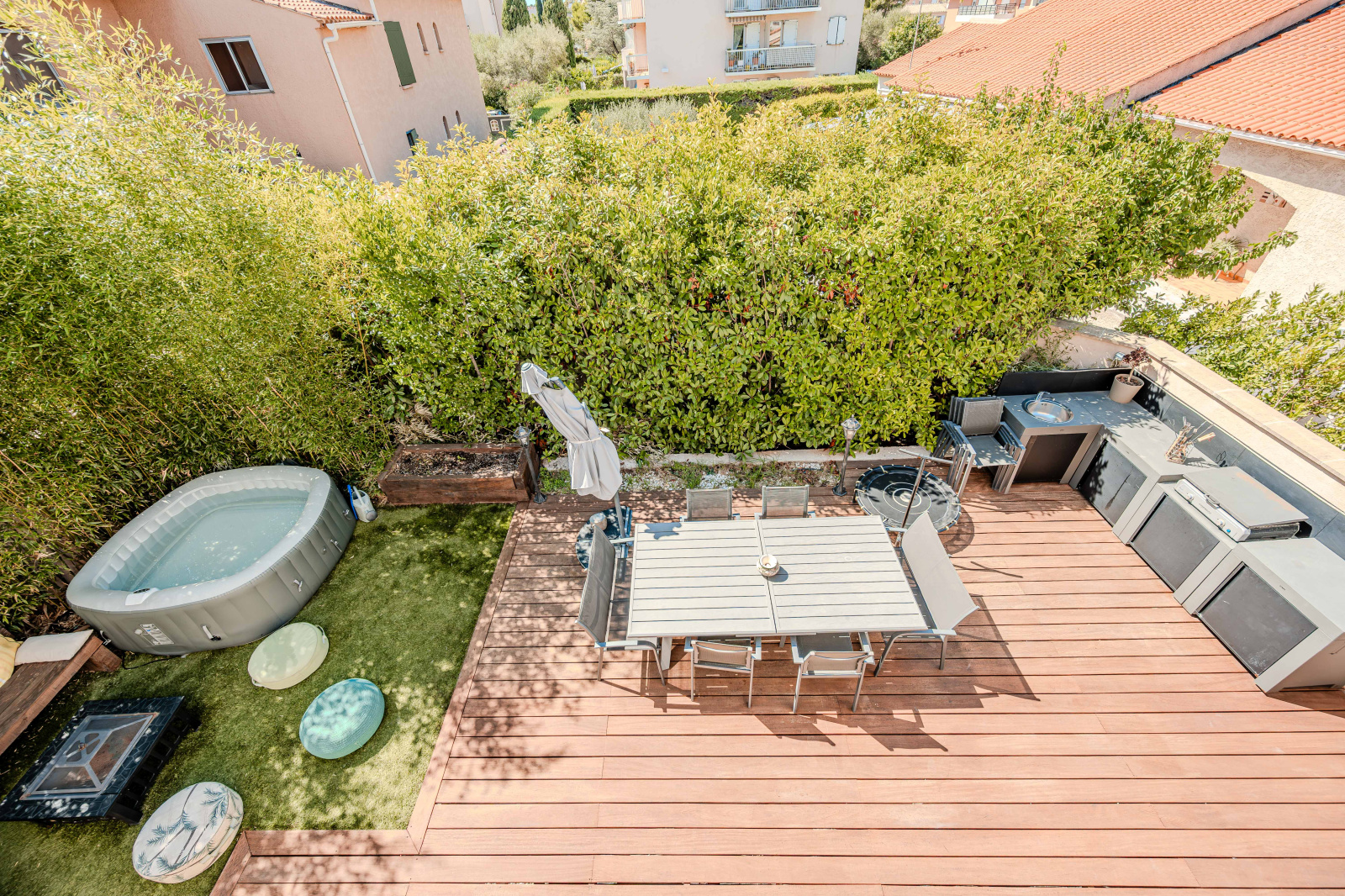 - Grande terrasse de 56 m² exposée Ouest avec cuisine extérieure