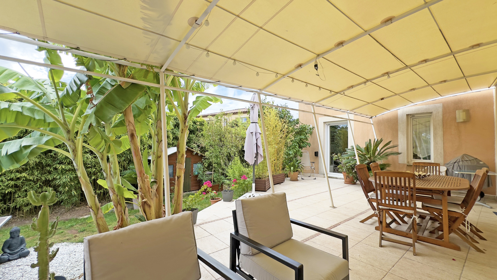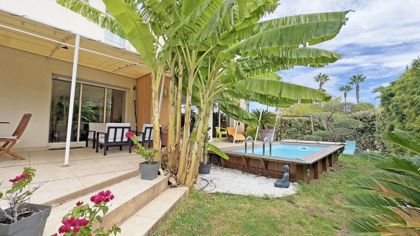 À l’extérieur, profitez d’un bel espace de détente avec une piscine semi-enterrée, idéalement exposée et sans vis-à-vis, pour savourer pleinement les journées ensoleillées.