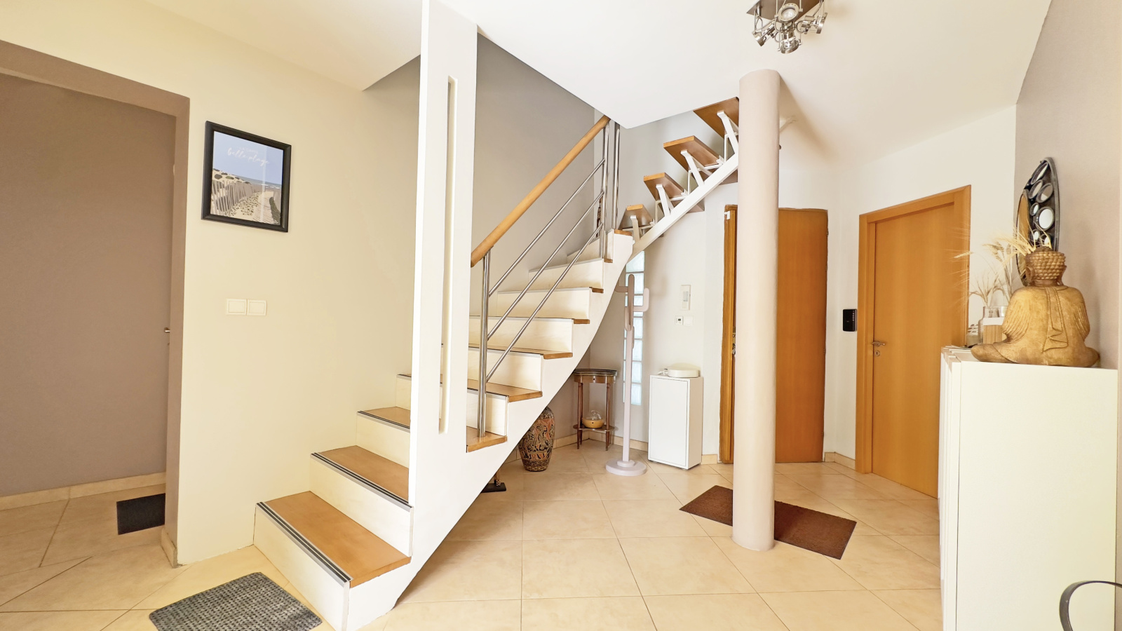 Cette maison, en excellent état et sans aucun travaux à prévoir, allie modernité, fonctionnalité et économies d’énergie grâce à ses panneaux photovoltaïques, sa chaudière neuve, son plancher chauffant au RDC et sa climatisation réversible à chaque niveau.