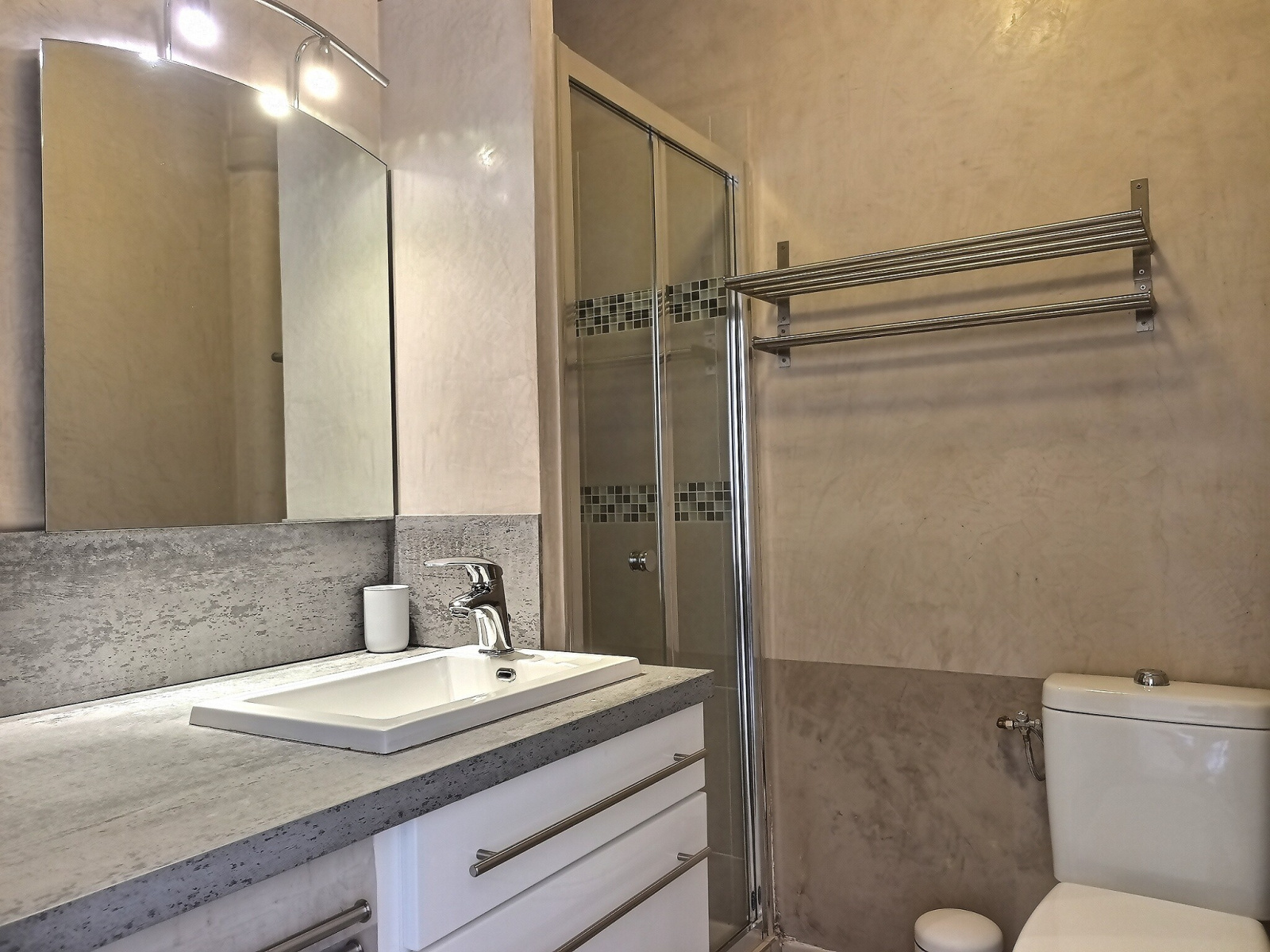 Exposé Sud, la terrasse de cet appartement offre une vue mer et collines, parfaite pour profiter des couchers de soleil et des douces soirées méditerranéennes.