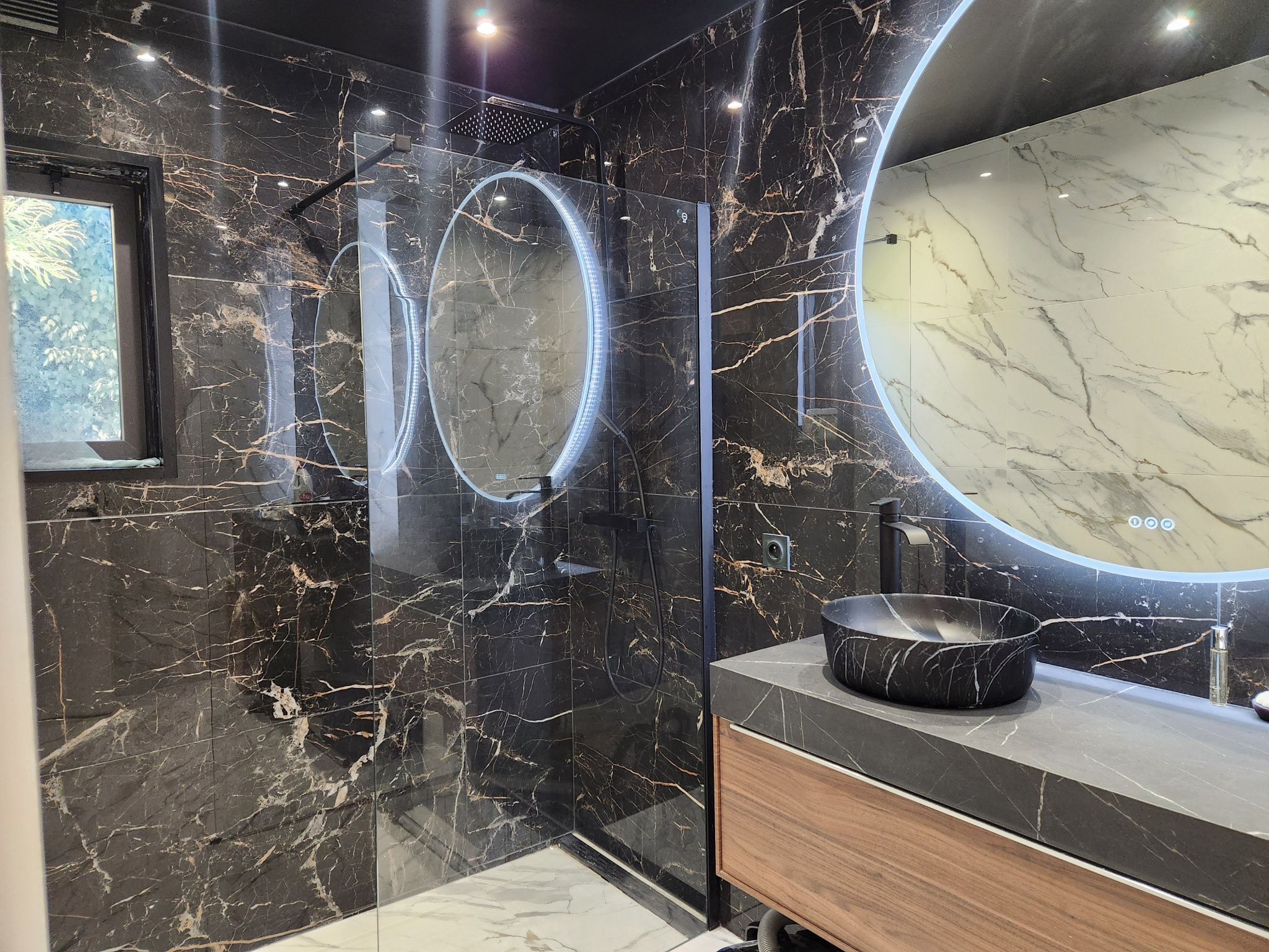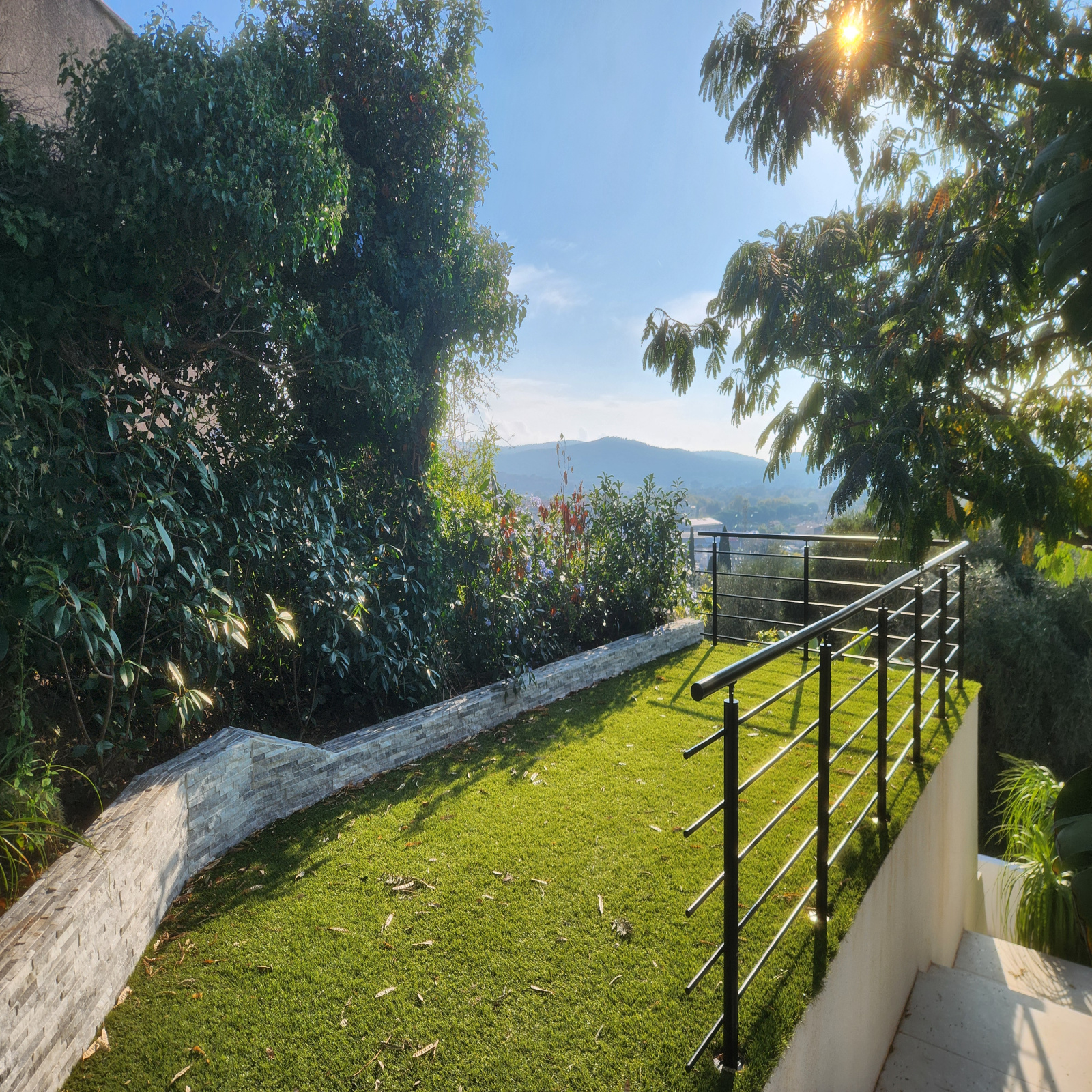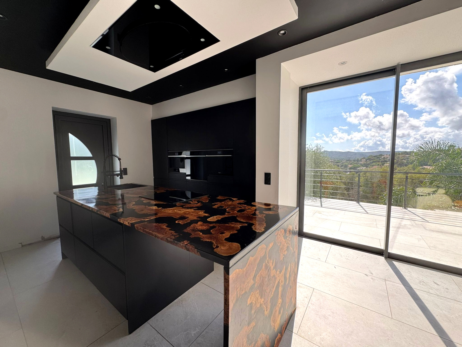 D’une surface généreuse, elle offre un spacieux séjour lumineux grâce à sa grande baie vitrée, donnant directement sur une terrasse de 30 m² avec une vue panoramique exceptionnelle sur Bormes-les-Mimosas et le Lavandou.