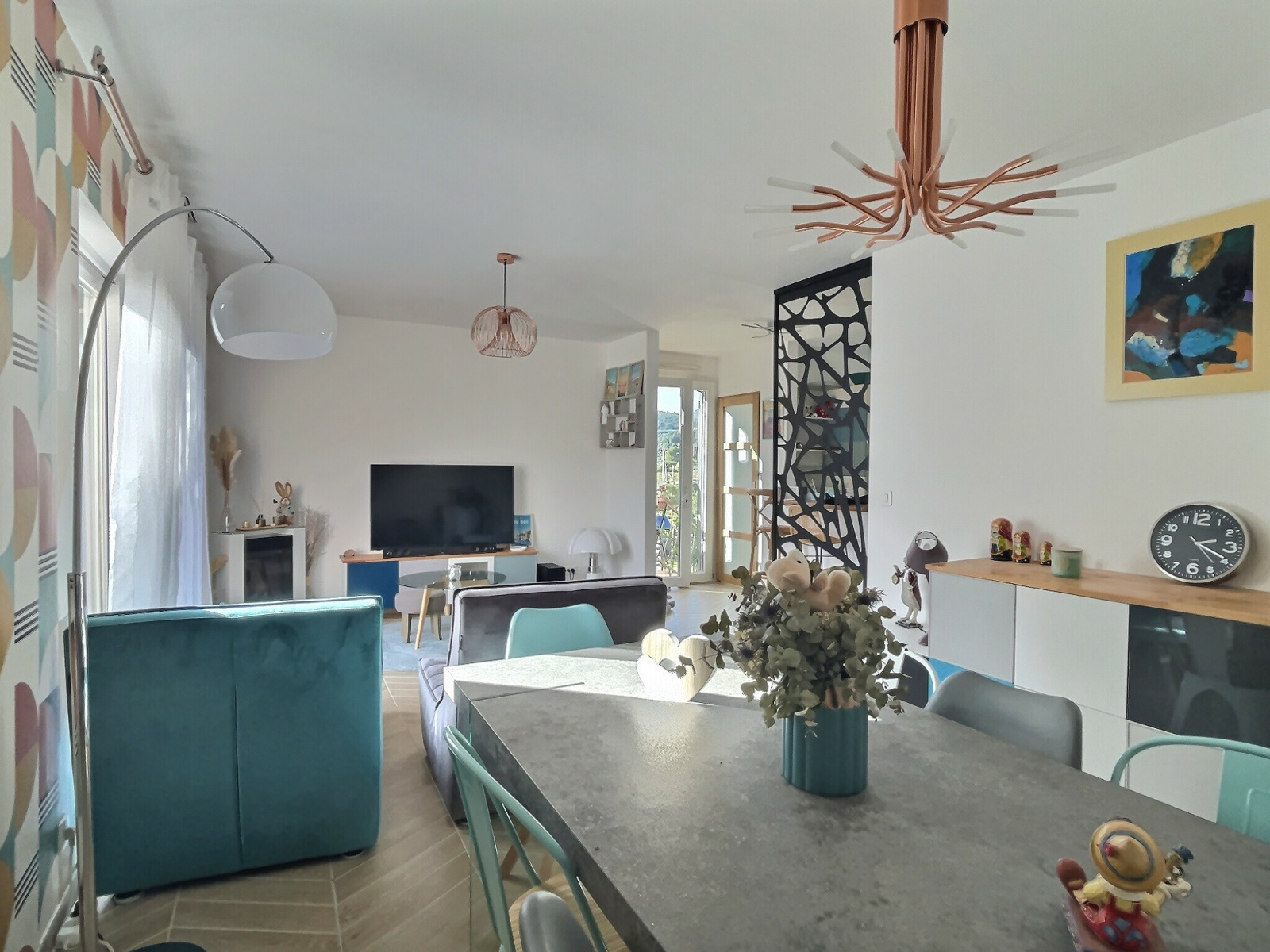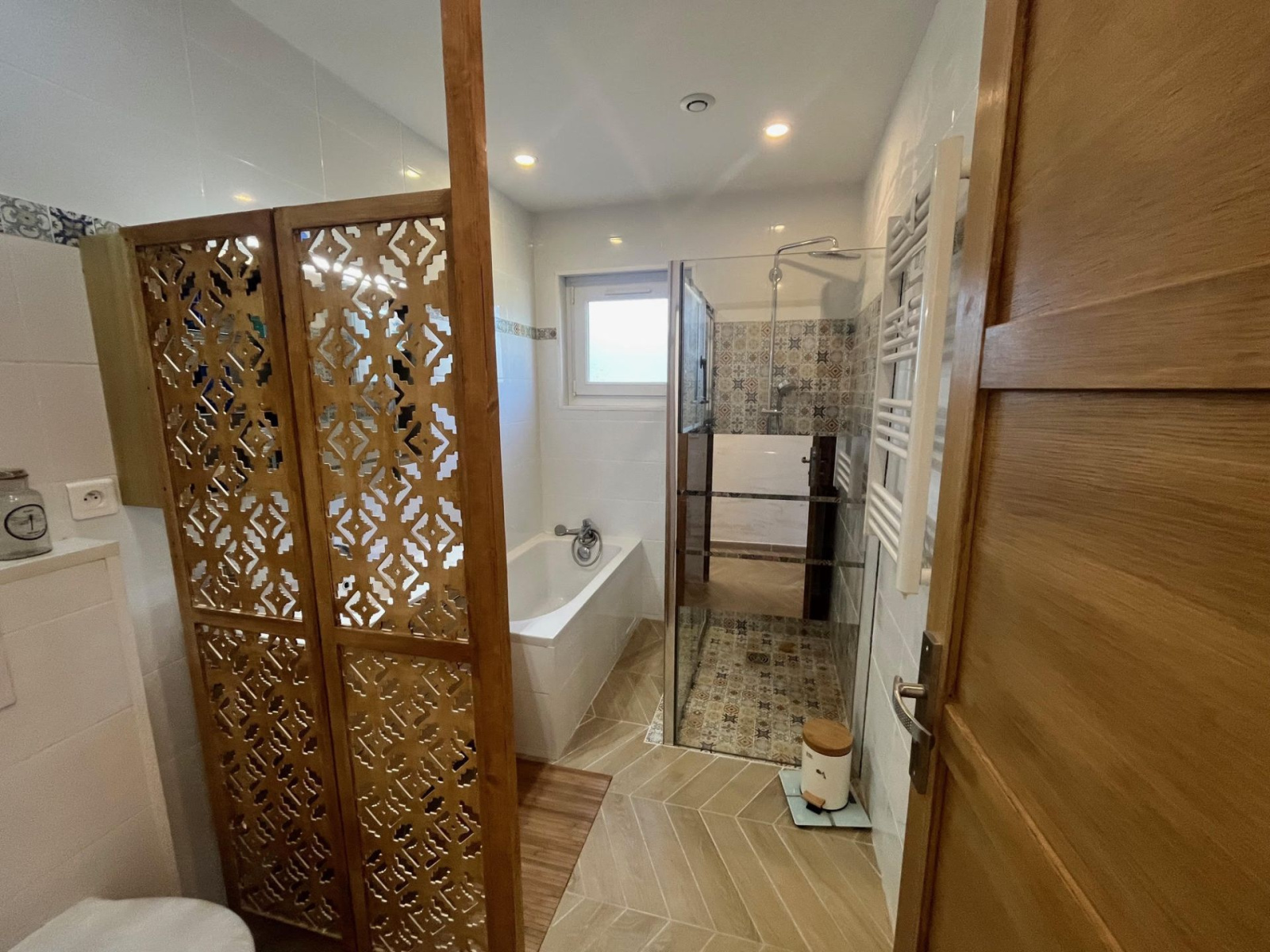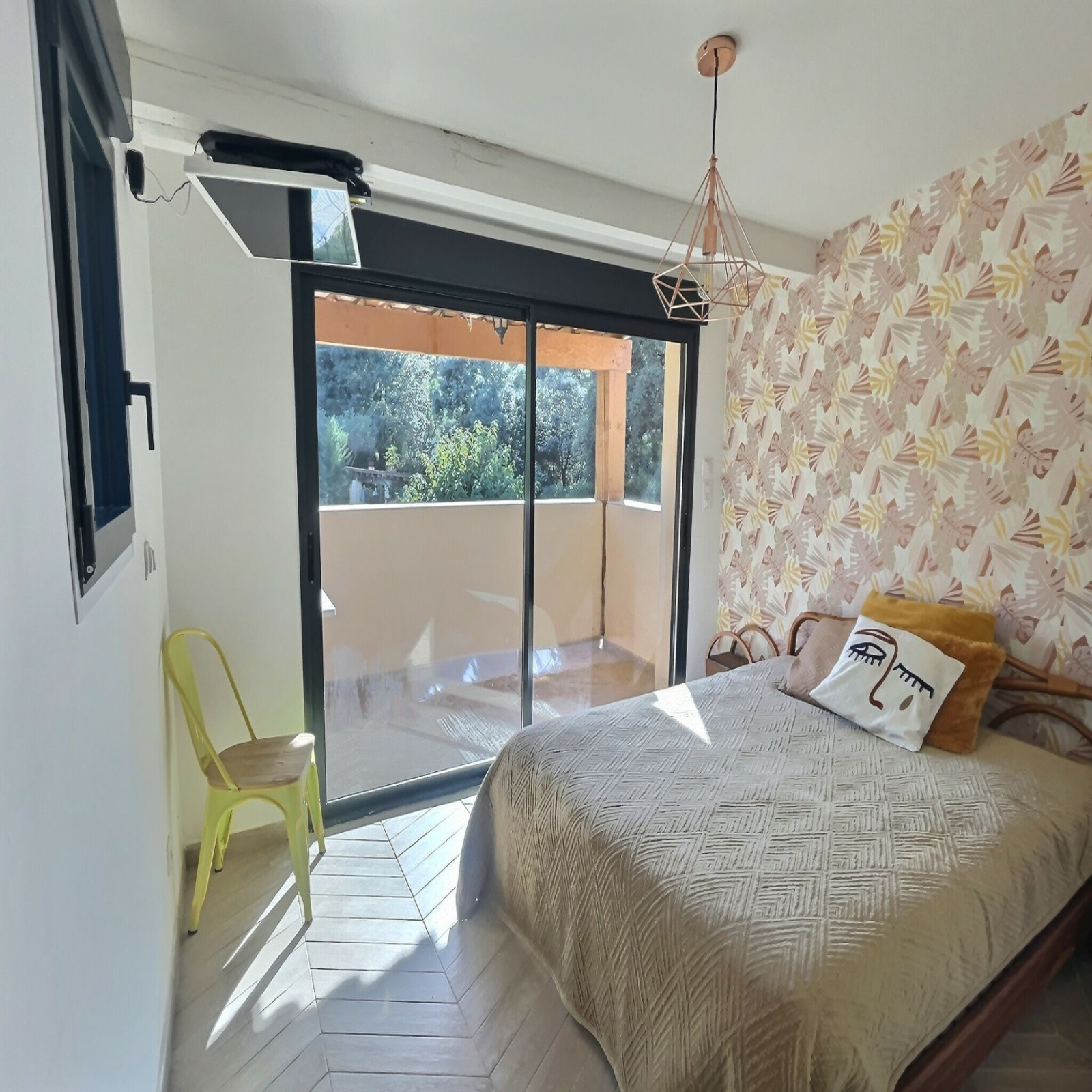 A l'étage entièrement rénové, une surface de 75 m² environ, une pièce de vie salon/salon/séjoiur avec balcon, deux chambres (dont une avec terrasse), un dressing et une salle d'eau/WC. Le bien dispose de PVC double vitrage, de volets aluminium et d'une pompe à chaleur gainable.