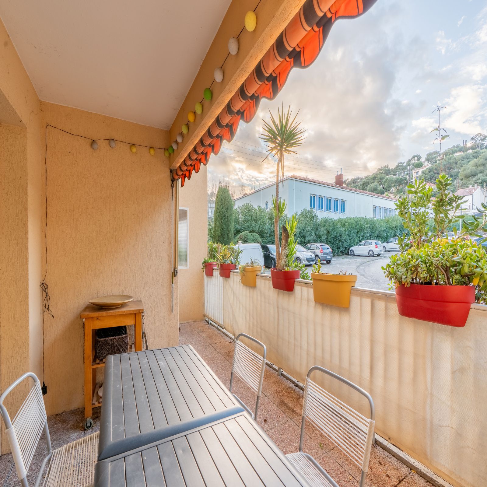 L’appartement dispose d’une terrasse généreuse de 14 m², d’un cellier privatif et d’un stationnement en résidence sécurisée. Le double vitrage assure une bonne isolation thermique et phonique, tandis que l’emplacement garantit confort et facilité d’aménagement.