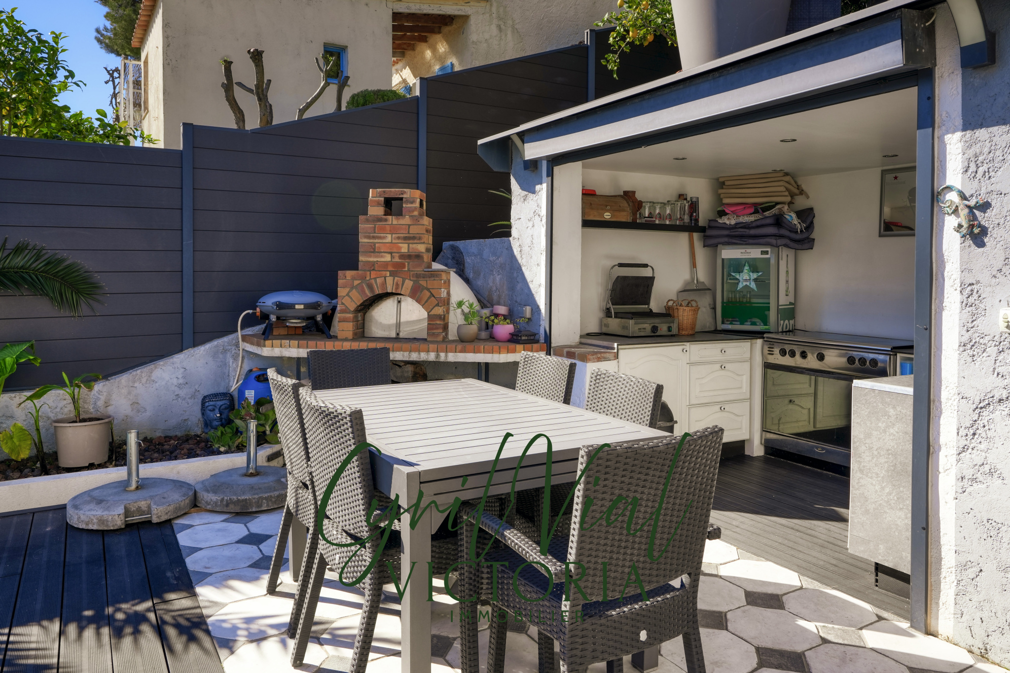 Implantée sur un terrain arboré d’environ 580 m², la propriété dispose également d’un garage privatif et de plusieurs espaces extérieurs aménagés, pensés pour profiter du cadre en toute saison.