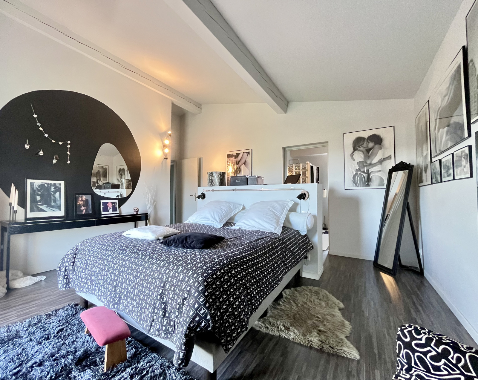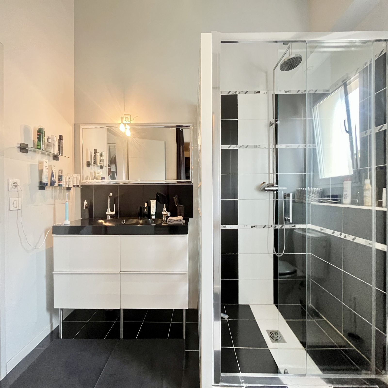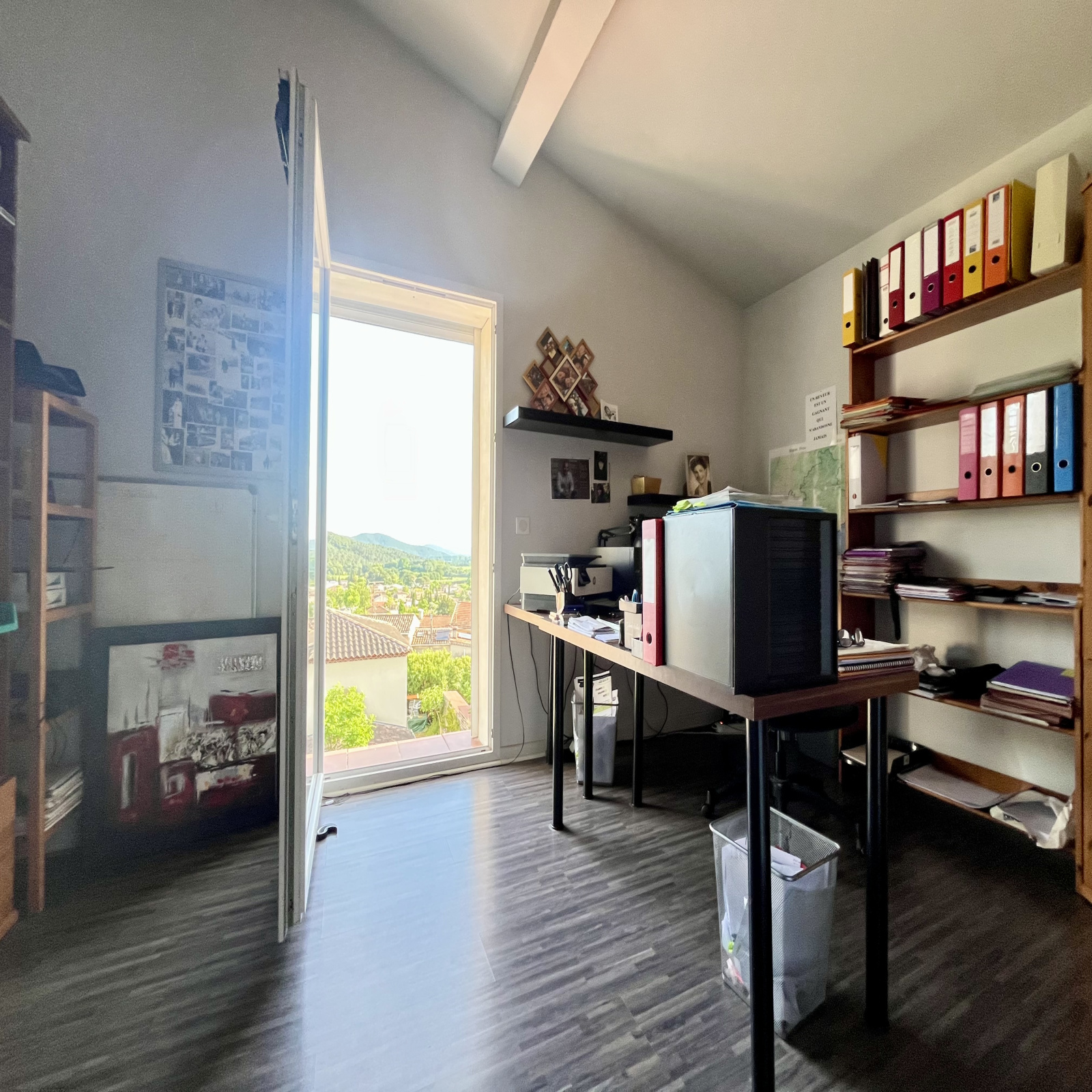 Elle se compose : Au rez-de-chaussée : un grand atelier transformable en studio et une cave. Au premier étage : un lumineux séjour donnant sur une terrasse de 50m2 avec une vue dégagée à 180°, une cuisine moderne entièrement équipée donnant sur une seconde terrasse, une chambre et une salle d'eau avec wc. Au deuxième étage : deux chambres, une salle d'eau et une suite parentale avec salle d'eau et dressing. Le terrain permet de stationner 4 véhicules et est piscinable.