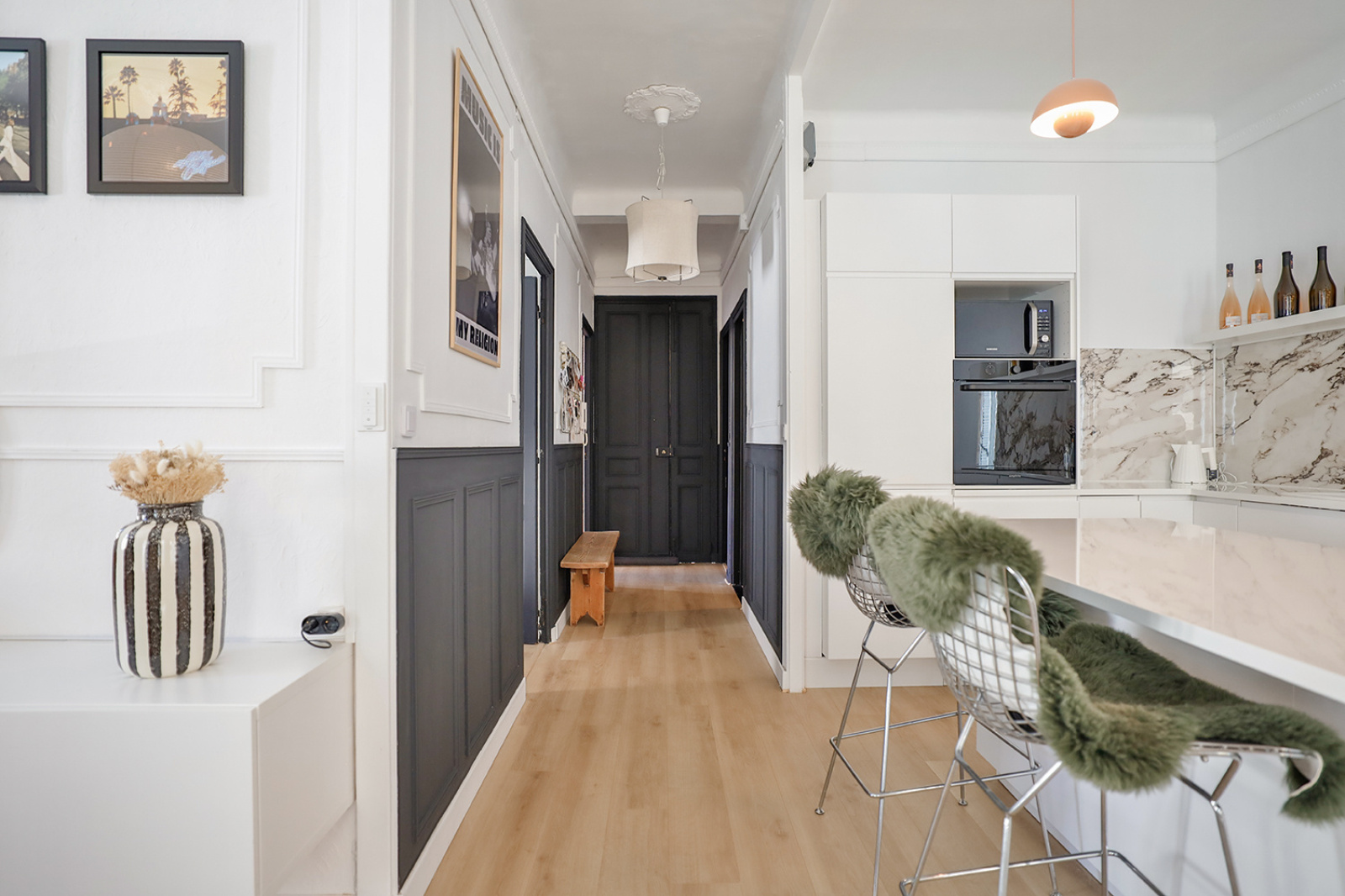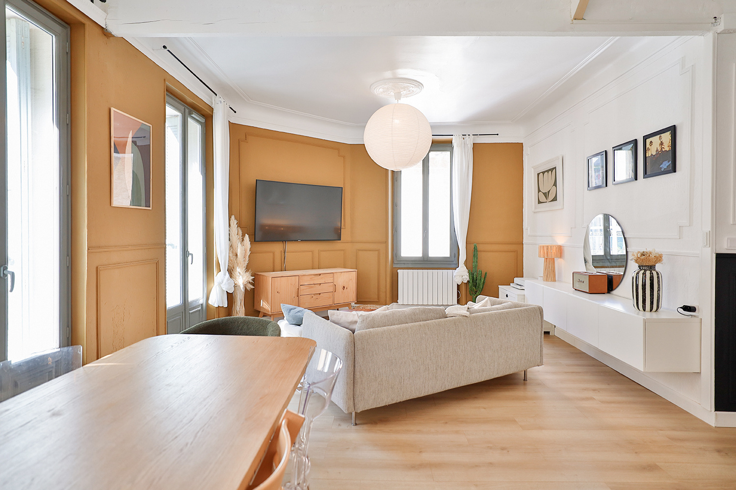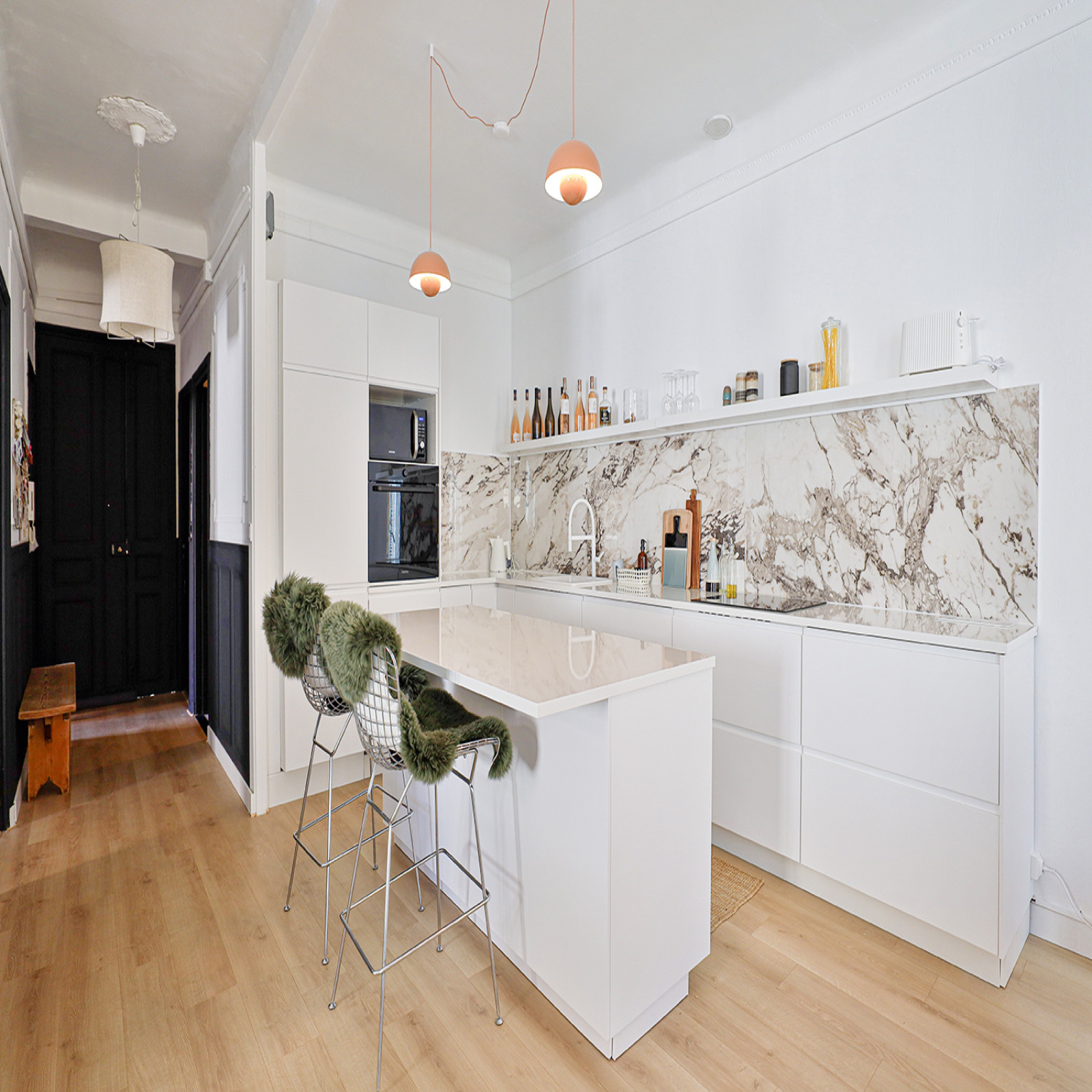 Situé au 1er étage sur 4 cet appartement lumineux entièrement rénové bénéficie du charme Haussmannien avec une touche de modernité dans le choix des matériaux.
