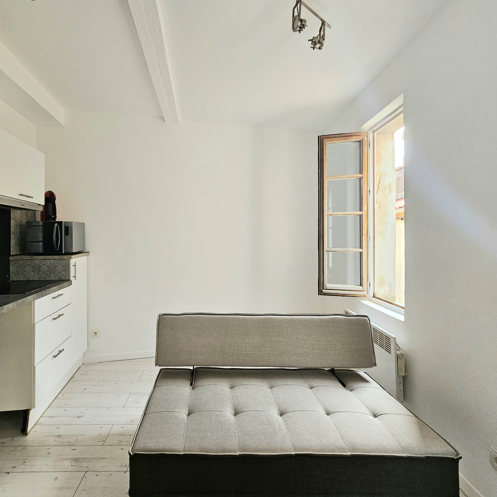 - au deuxième étage : un appartement T2 avec salon/séjour, cuisine, une chambre, une salle de bains avec WC
