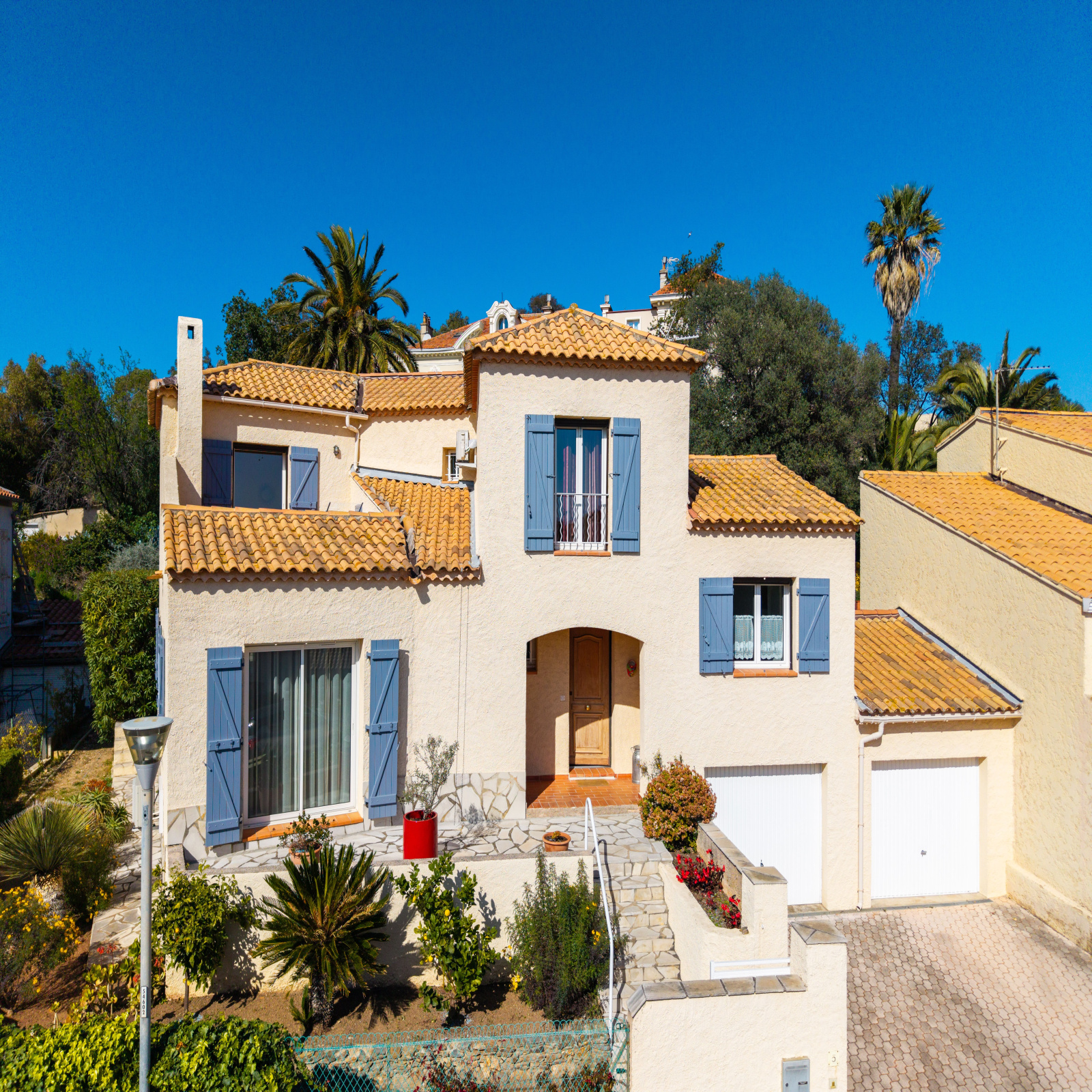 MAISON T6 CONFORTABLE-AU CALME- VUE DEGAGEE Situé dans un secteur recherché, au calme dans une impasse et à proximité immédiate du centre-ville de Hyères, cette maison traditionnelle de 135m2 habitable saura vous séduire par ses beaux volumes et son cadre de vie privilégié. Edifiée sur un terrain arboré d'environ 700m2, aux divers essences méditerranéennes, elle se compose ainsi: -Au rez-de-jardin: deux garages, trois places de stationnements et un abri de jardin. -Au rez-de-chaussée: une spacieuse entrée avec placard, un grand séjour lumineux exposé sud-ouest, une salle à manger, une cuisine indépendante entièrement équipée, une buanderie, un WC, une salle d'eau et une chambre ou bureau avec placard. -A l'étage: trois chambres avec placards dont une suite parentale ouvrant sur une tropézienne avec aperçu mer, idéale pour savourer vos petits déjeuners en toute tranquillité. Les extérieurs invitent à la détente entre soleil et ombre; une maison idéale pour une famille souhaitant du confort et de la sérénité, à deux pas des commodités du centre-ville.