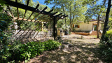 La parcelle d'environ 1400 m2, entièrement clôturée et paysagée, offre divers espaces conviviaux pensés pour la détente, notamment avec sa piscine en forme libre d'une surface de 10 x 5, sa vaste plage dallée, et son pool-house.