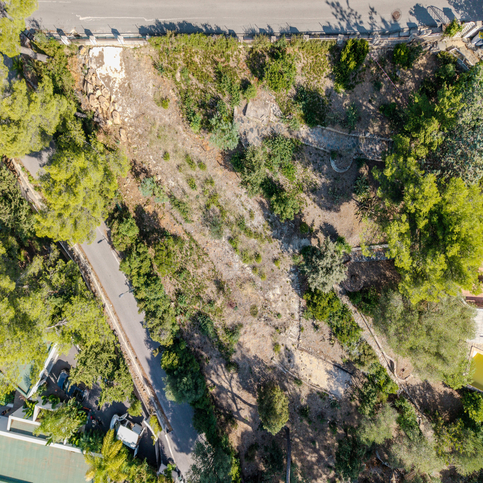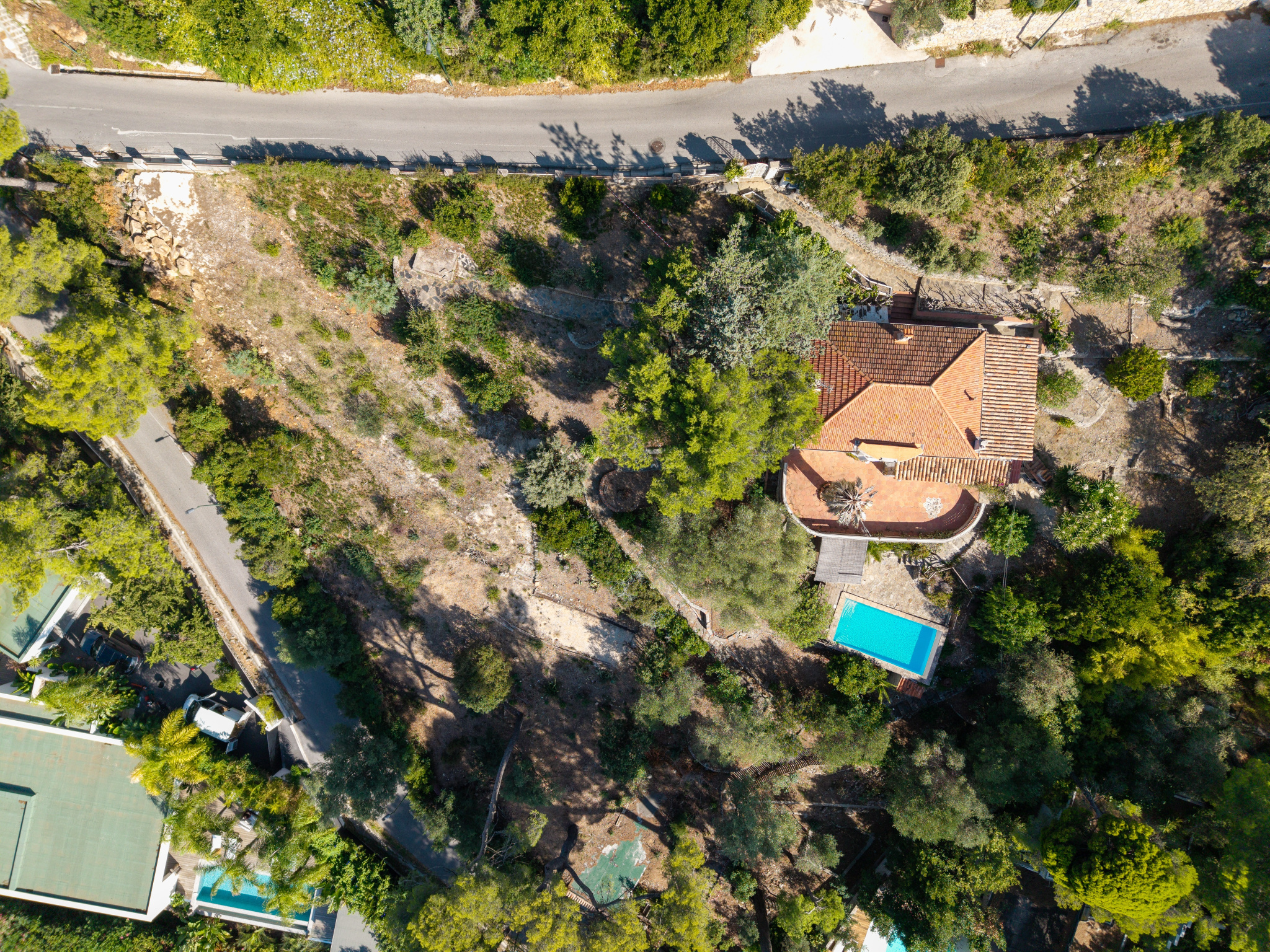 Le terrain, en pente douce, est déjà aménagé avec quelques restanques existantes et dispose d’un garage de 40 m² en partie basse, ainsi que d’une cave.